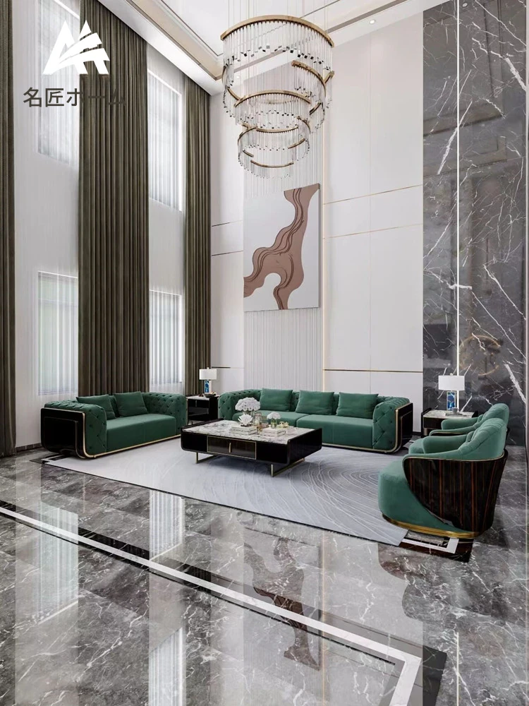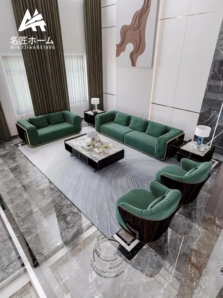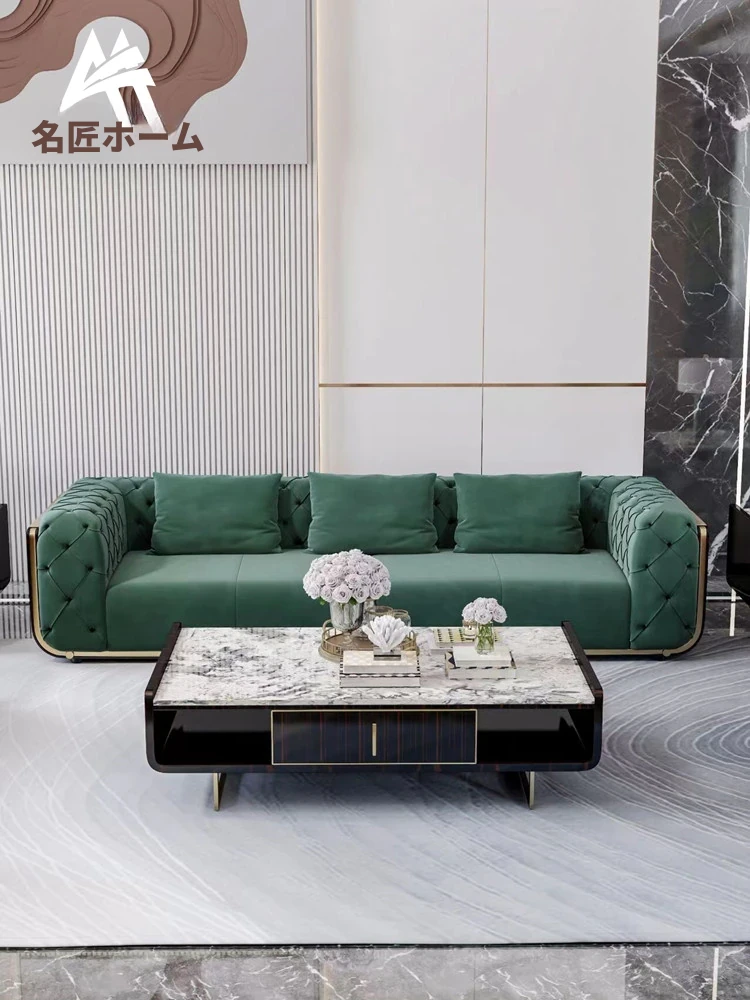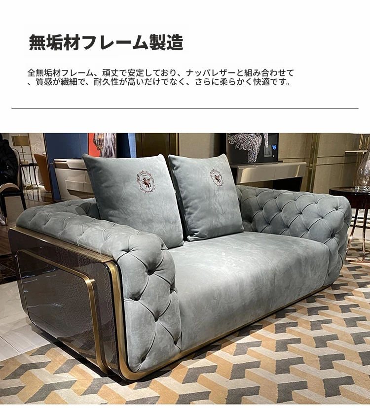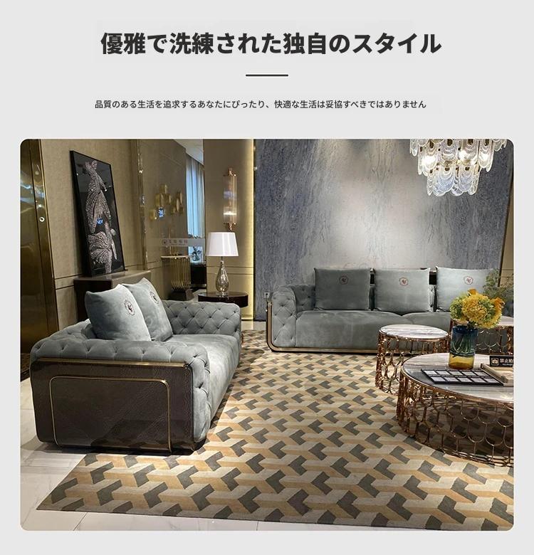 イタリアンラグジュアリー本革ソファー|モダンミニマリズムの高級リビング家具|豪華な別荘や大平層に最適な港式無垢材製品【心地よいくつろぎを提供】