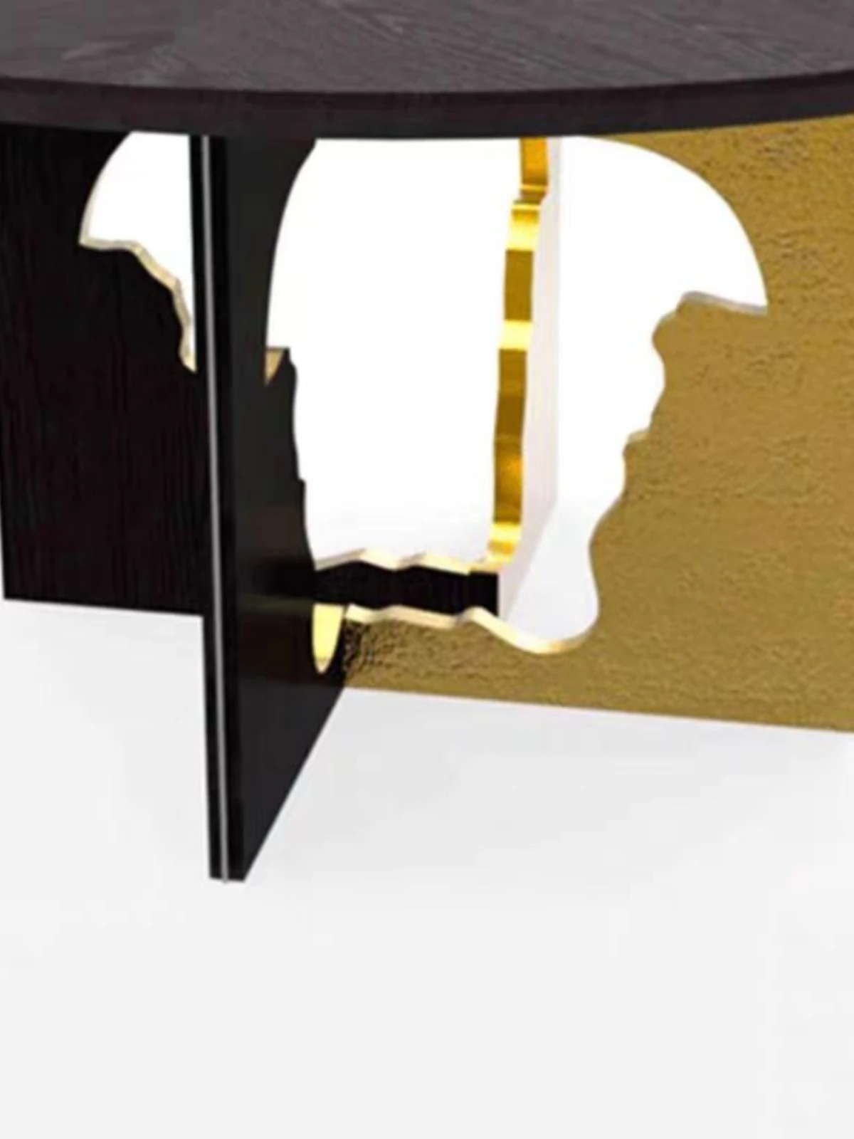 スタイリッシュな小型ラウンドテーブル - 高級岩板素材使用、リラックスした空間を演出する接待・談話用デスクセット!