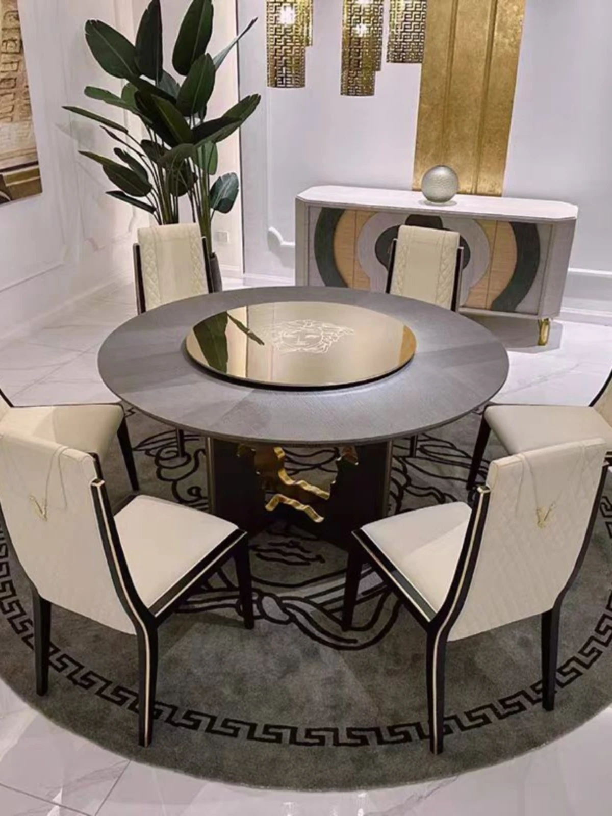 イタリアンラグジュアリー高級セラミックダイニングテーブル|家族で楽しむおしゃれな丸型テーブル|サイズ多様でどんなお部屋にもフィット|高級デザインの別荘やレストランに最適