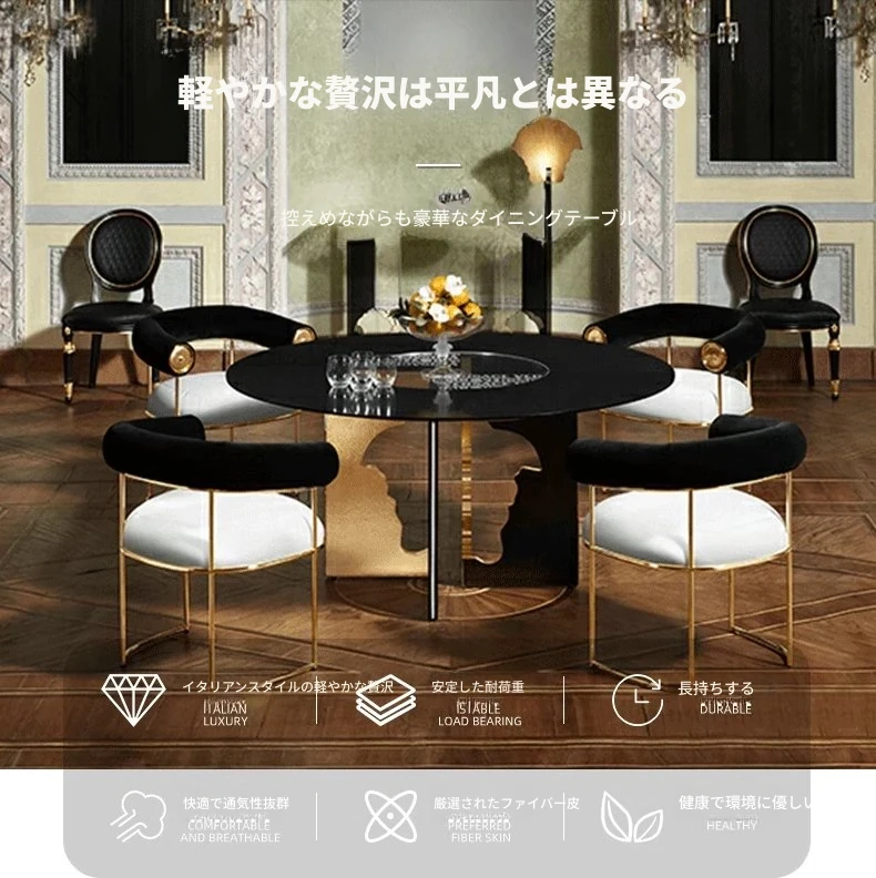 アンティーク風の高級石製ダイニングテーブル インポート・パンドラの天然大理石使用 イタリアンミニマルスタイルのテーブル&チェアセットで、洗練された食卓を演出!