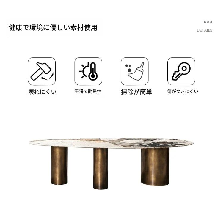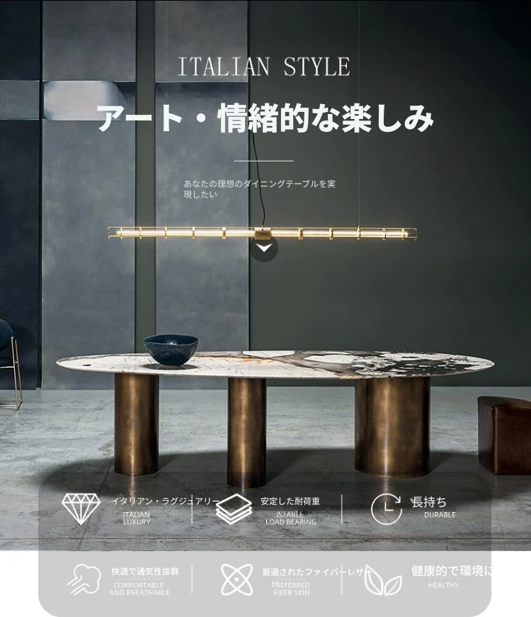 アンティーク風の高級石製ダイニングテーブル インポート・パンドラの天然大理石使用 イタリアンミニマルスタイルのテーブル&チェアセットで、洗練された食卓を演出!