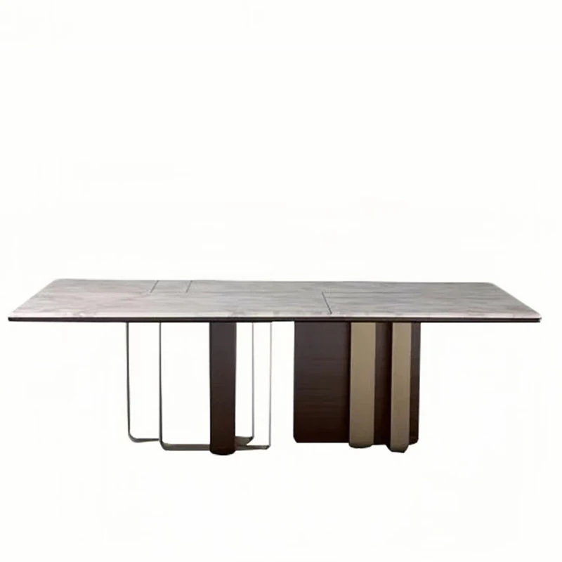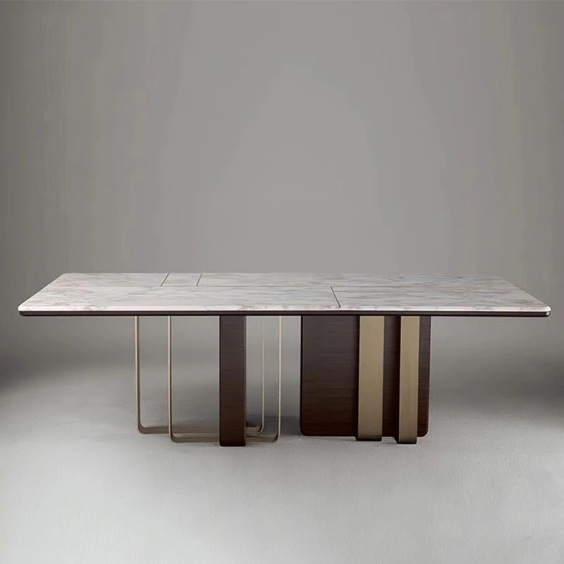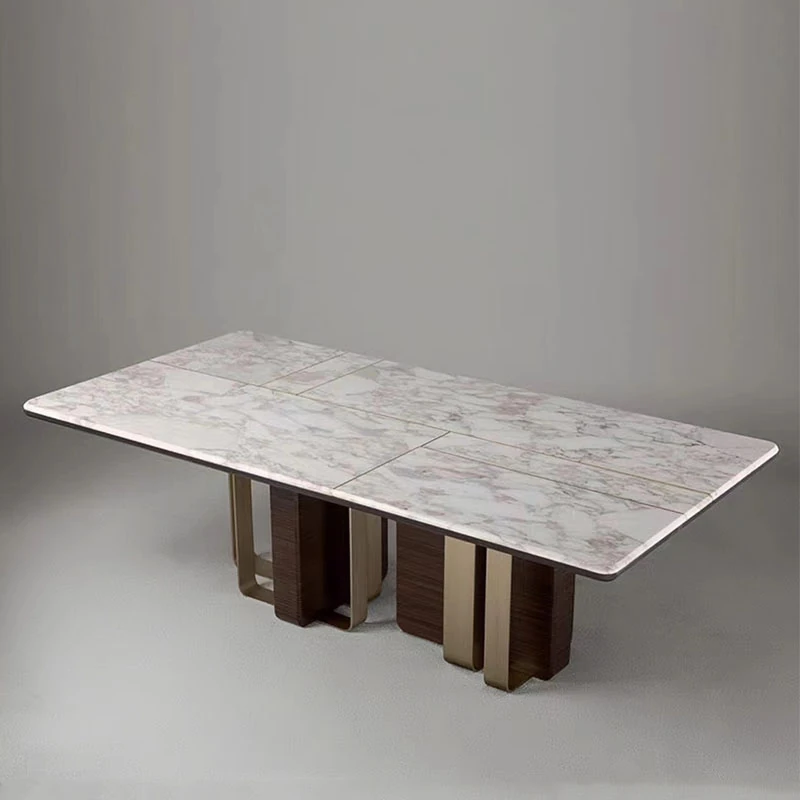 イタリアンラグジュアリー大理石長方形テーブル - デザイナーによるサンプルルームのための洗練されたティーテーブル。別荘に最適なステンレススチールとウォールナットの組み合わせ。高級感あふれる空間を演出します!