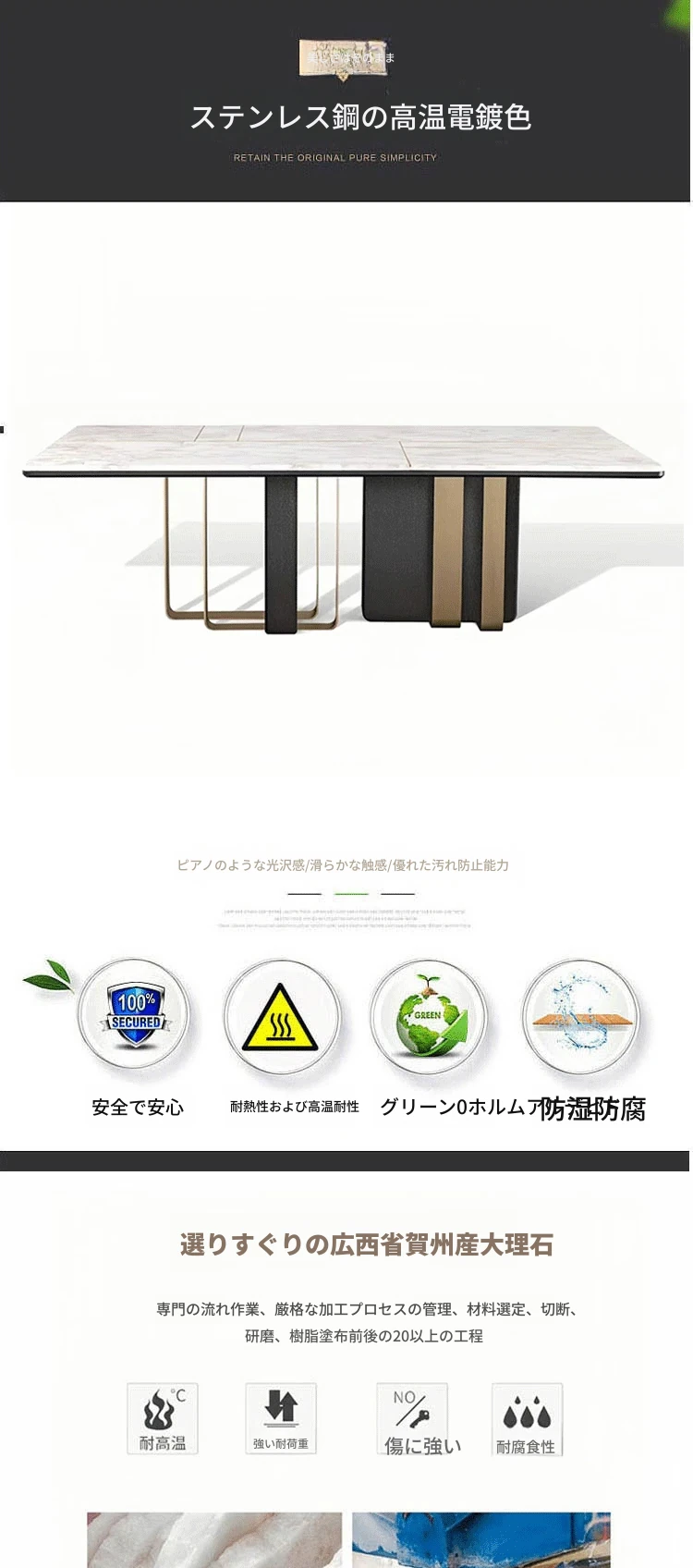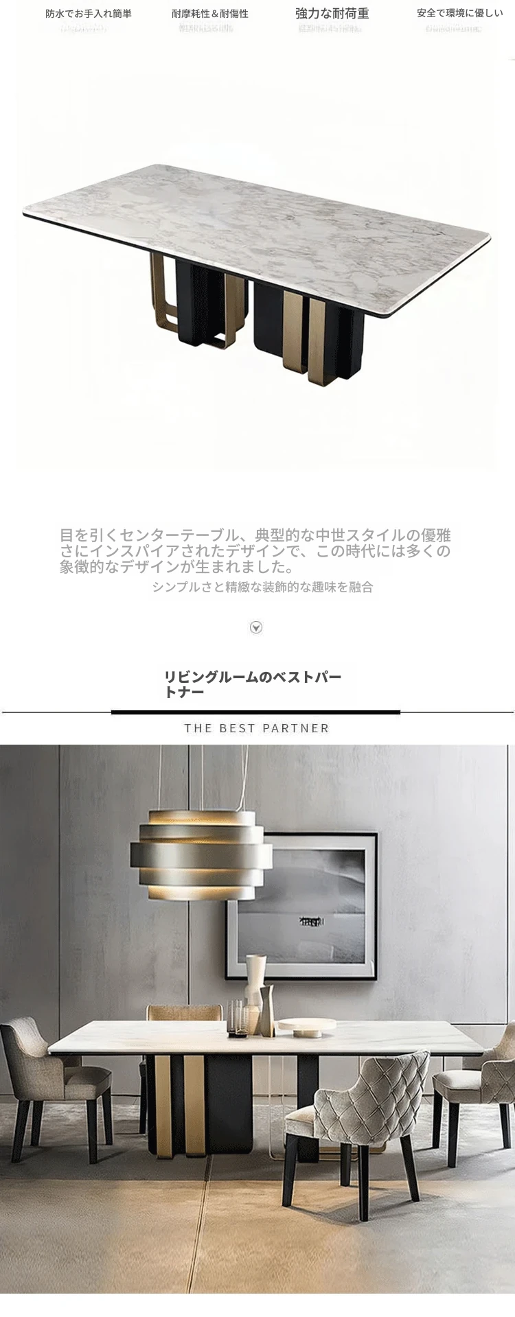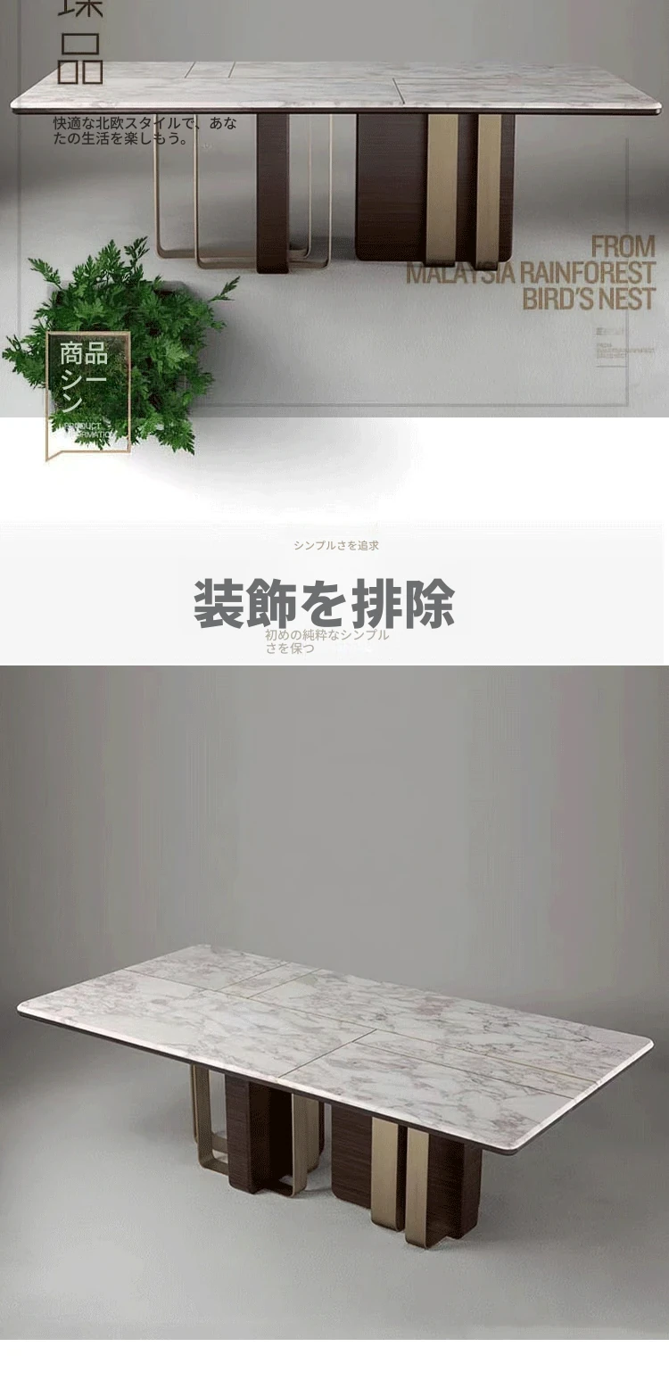 アンティーク風の高級石製ダイニングテーブル インポート・パンドラの天然大理石使用 イタリアンミニマルスタイルのテーブル&チェアセットで、洗練された食卓を演出!