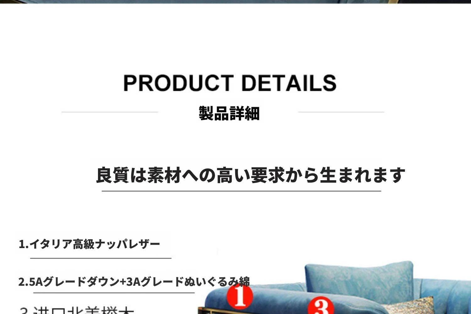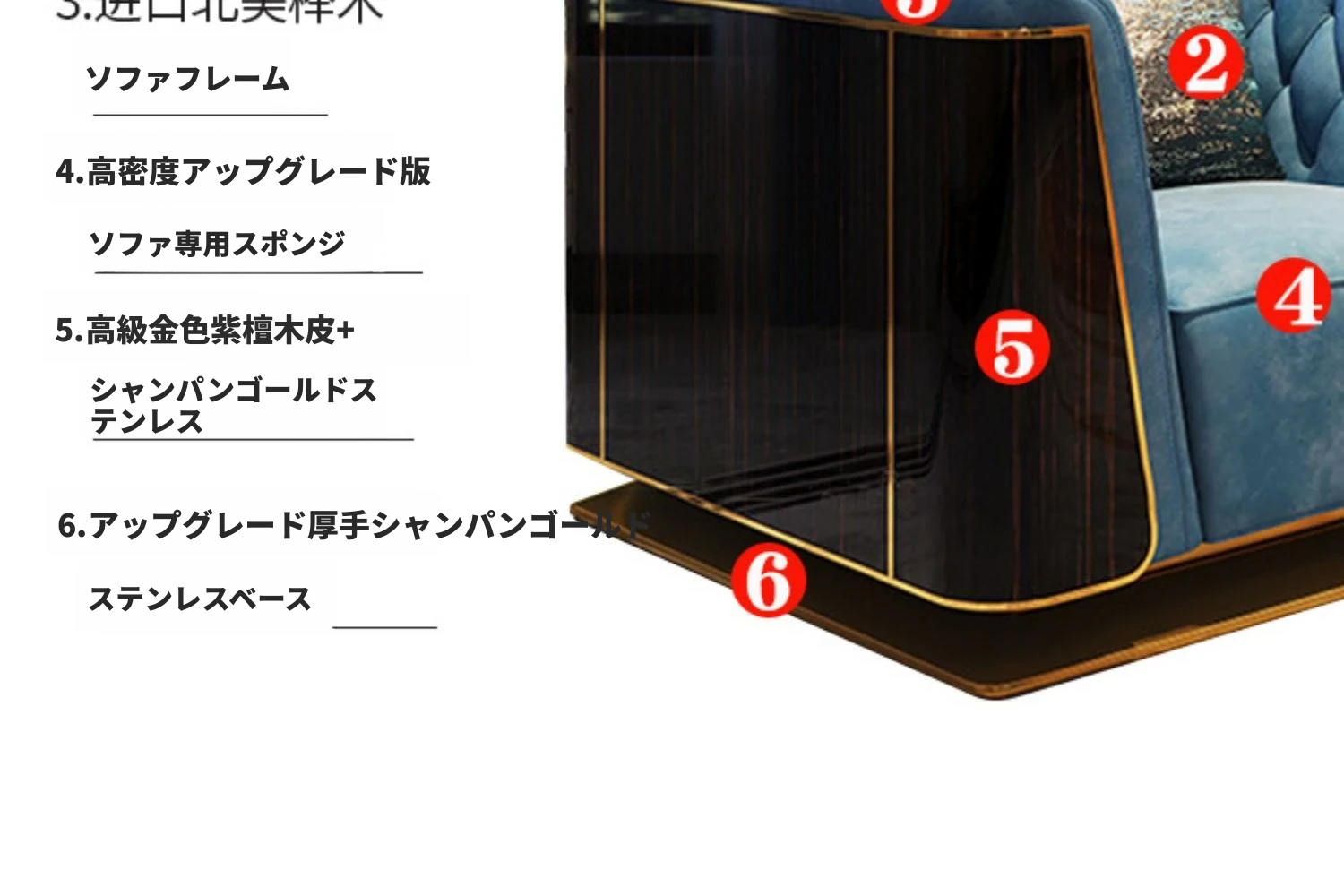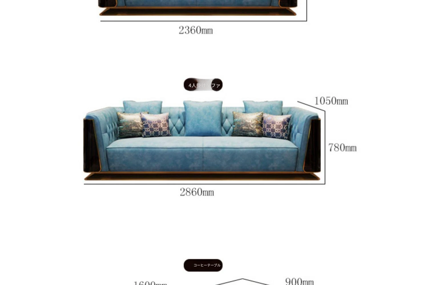 イタリアンラグジュアリー4人掛けソファ