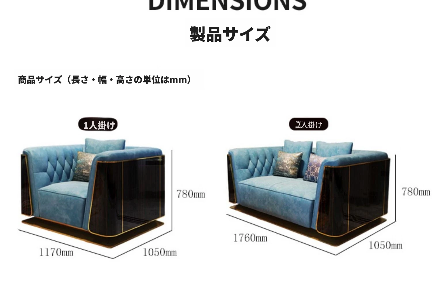 イタリアンラグジュアリー2人掛けソファ
