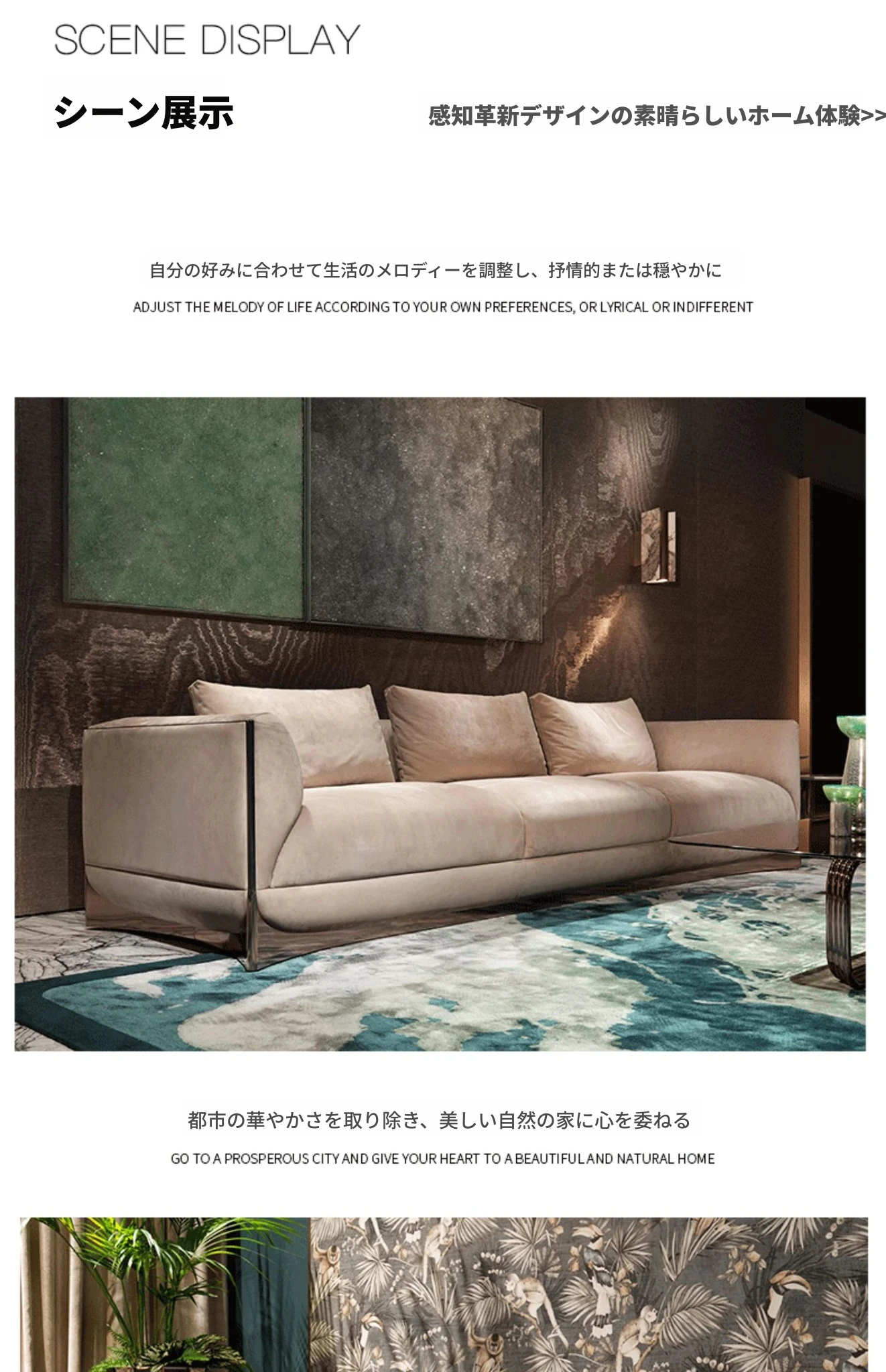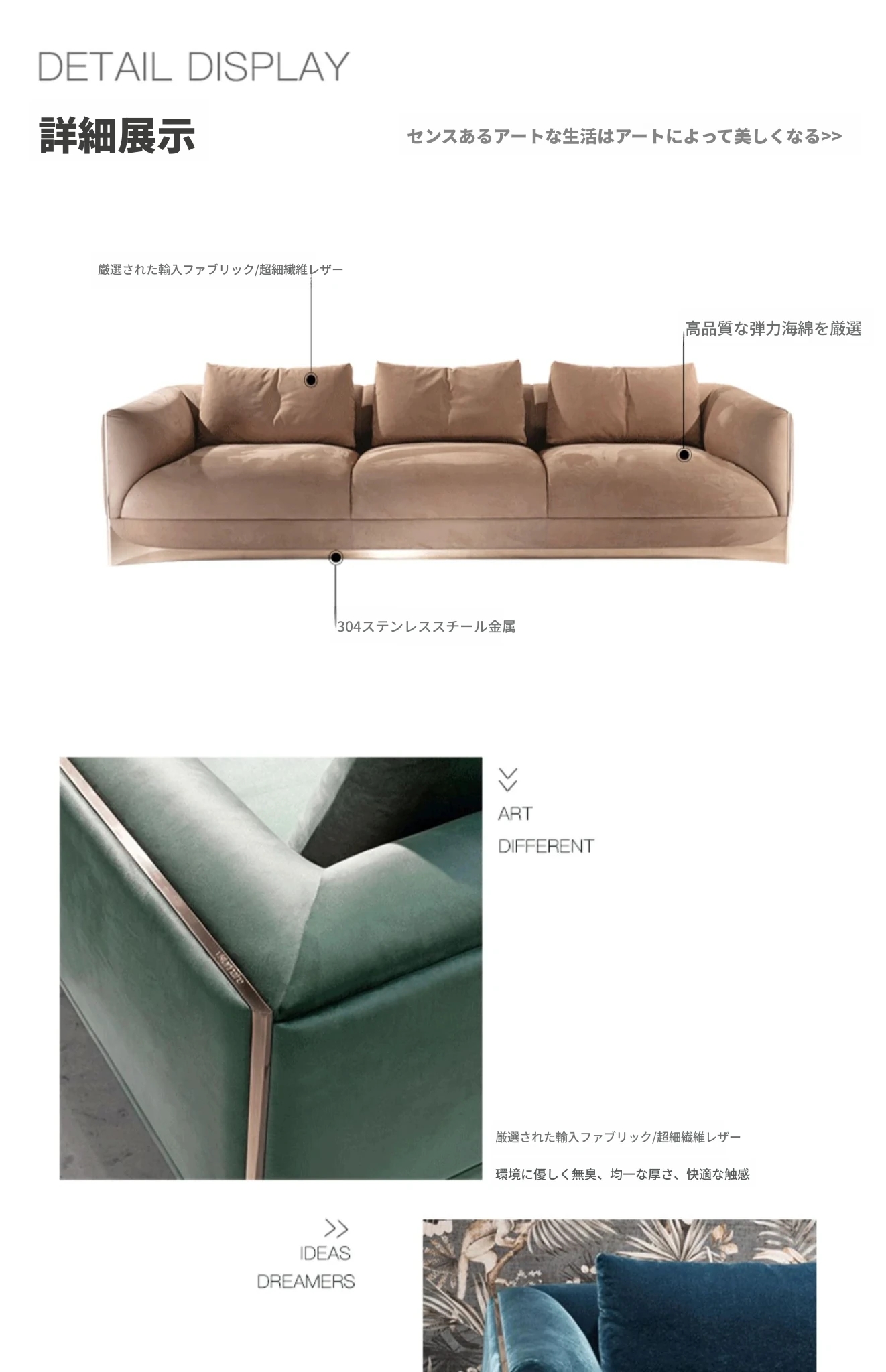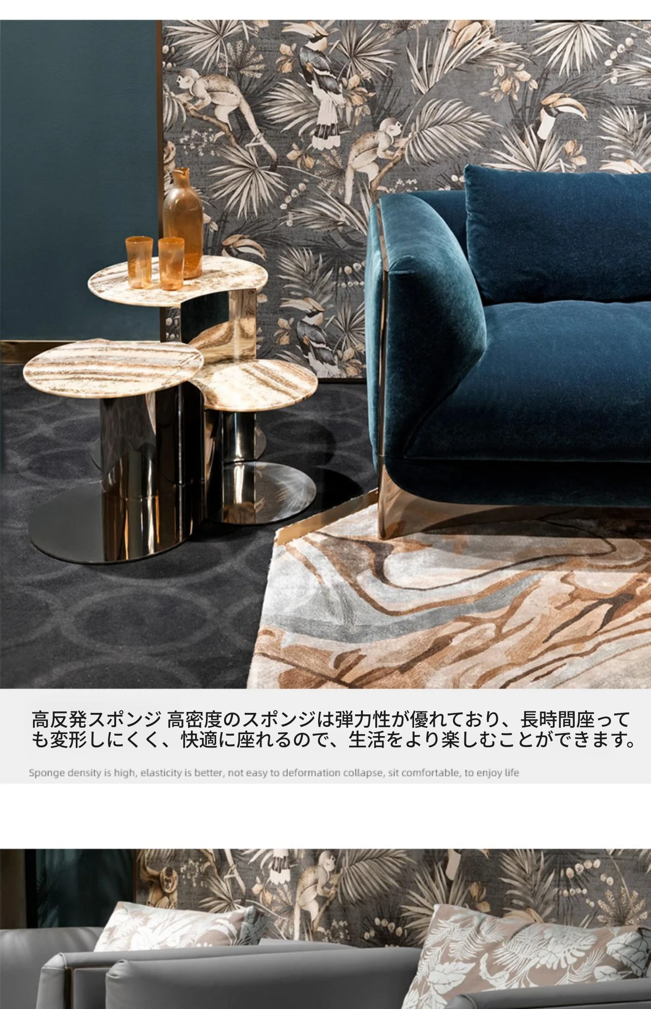 イタリア製のラグジュアリーなスエードソファ「ビジョナーレ」スマイルソファ - ヴィラのリビングルームにぴったりな高級木製家具。心地よい座り心地と洗練されたデザインで、特別な空間を演出します。