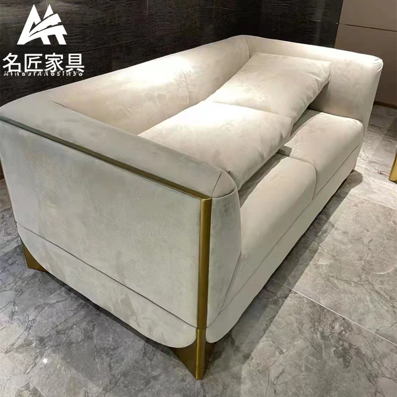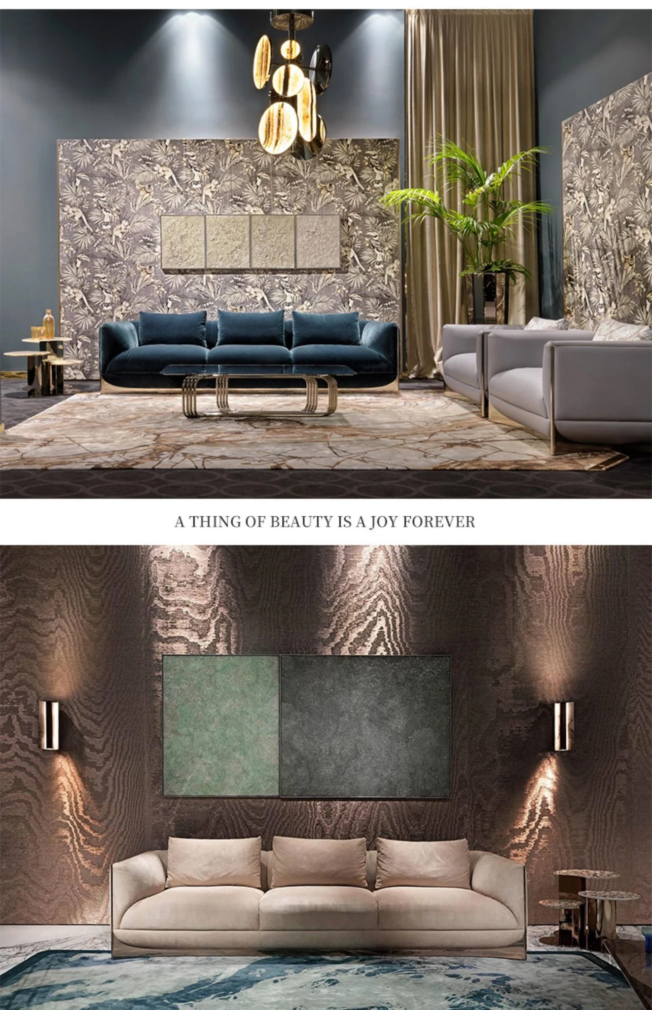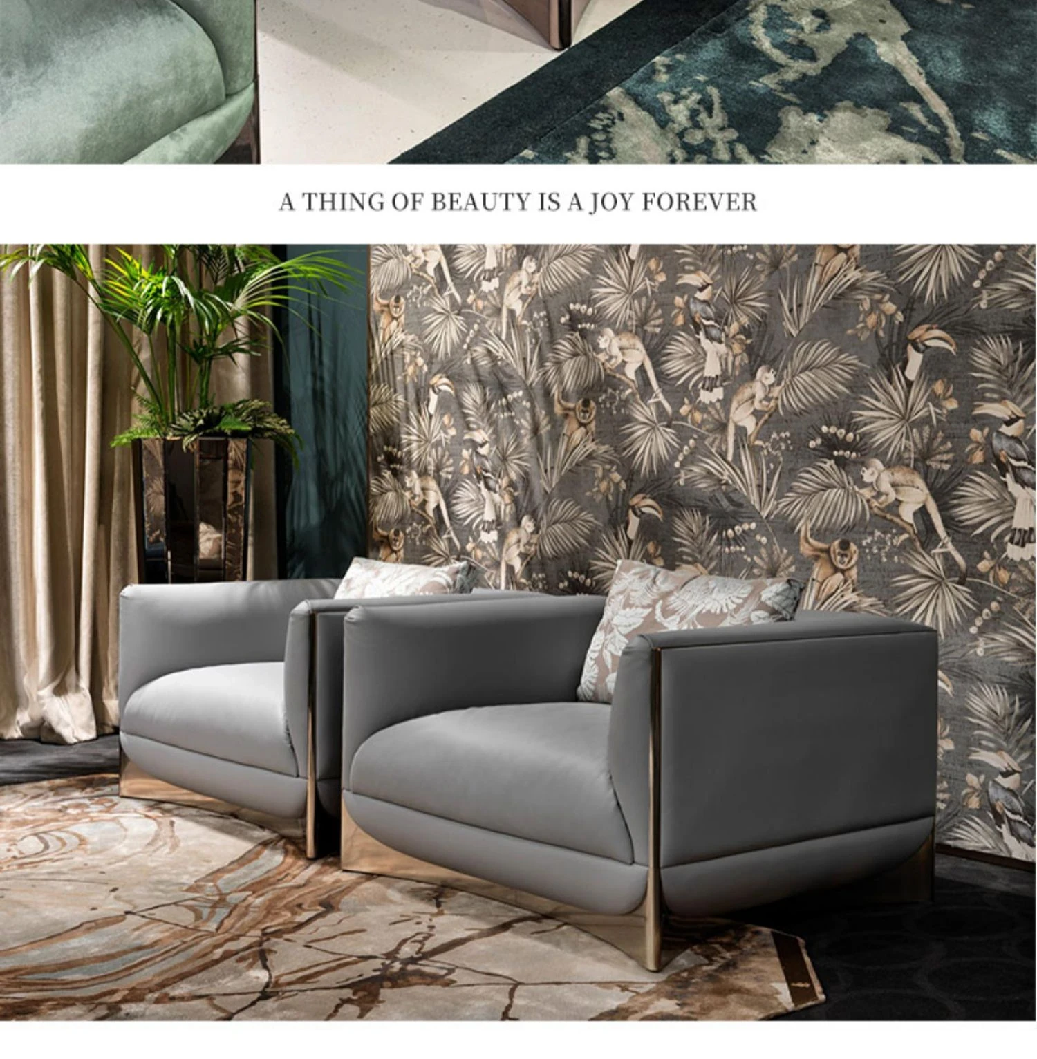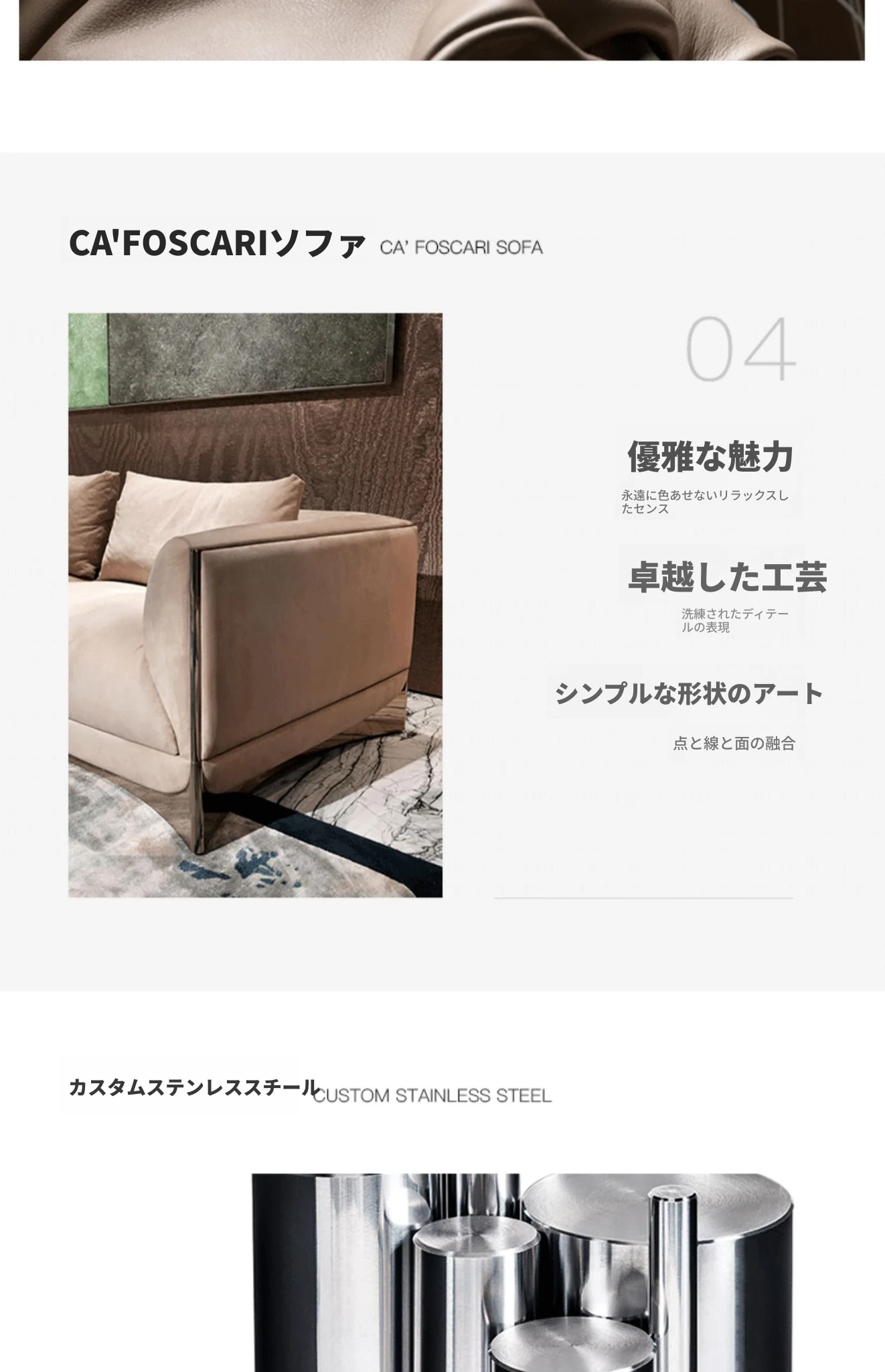 イタリア製のラグジュアリーなスエードソファ「ビジョナーレ」スマイルソファ - ヴィラのリビングルームにぴったりな高級木製家具。心地よい座り心地と洗練されたデザインで、特別な空間を演出します。