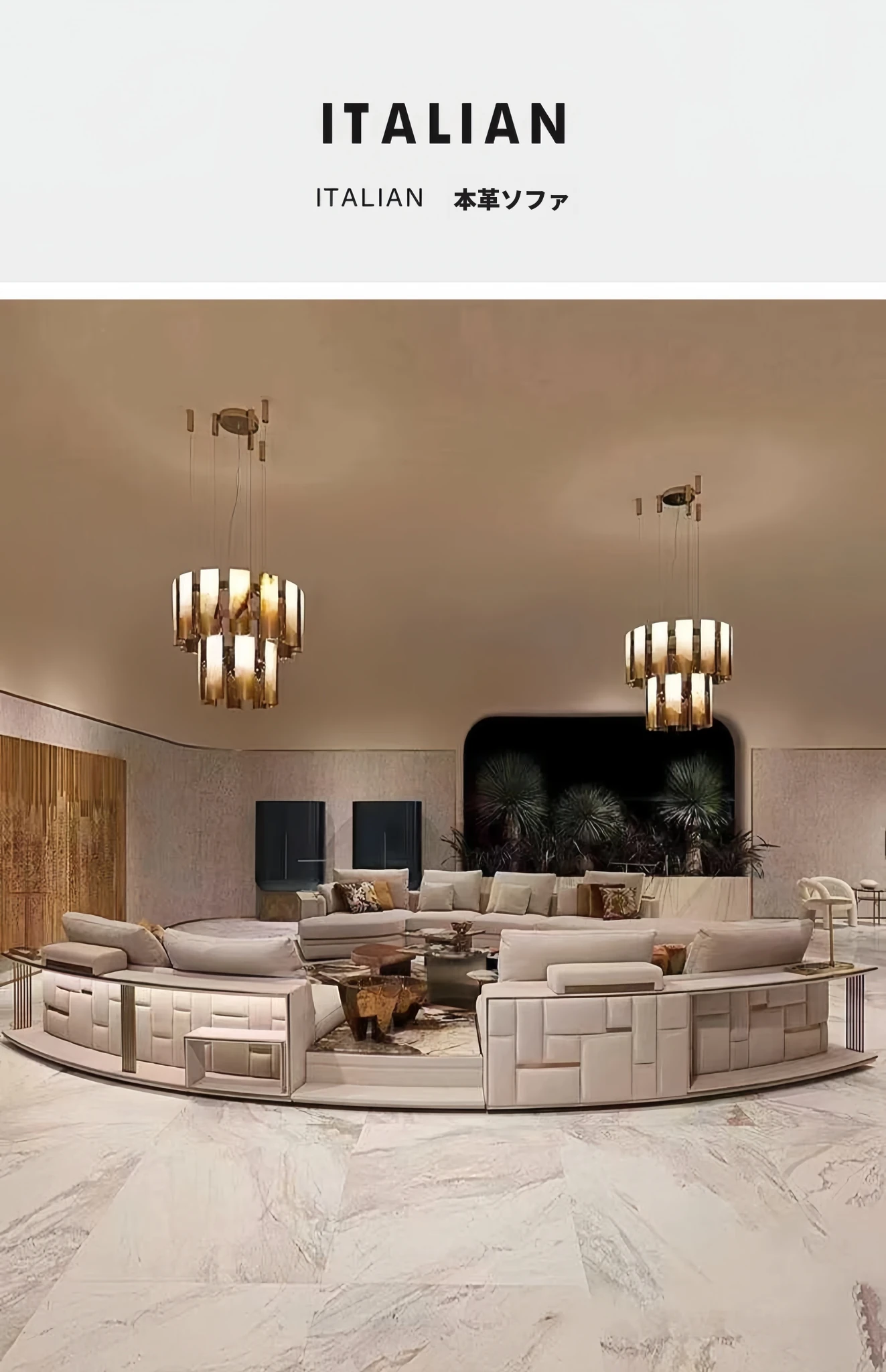 イタリアンラグジュアリー Visionnaire 大弧型本革ソファ - バビロンスタイルのリビングルームに最適な洗練されたデザイン!広々とした空間を彩る、極上の快適さを手に入れましょう。