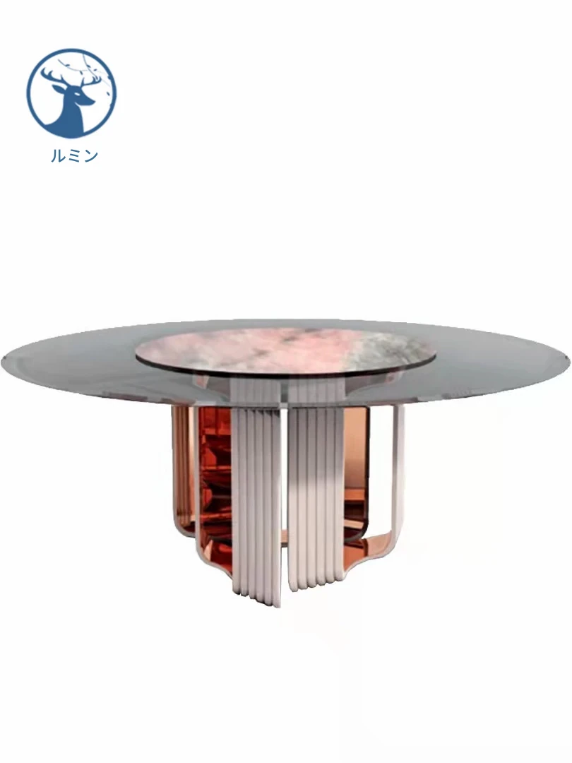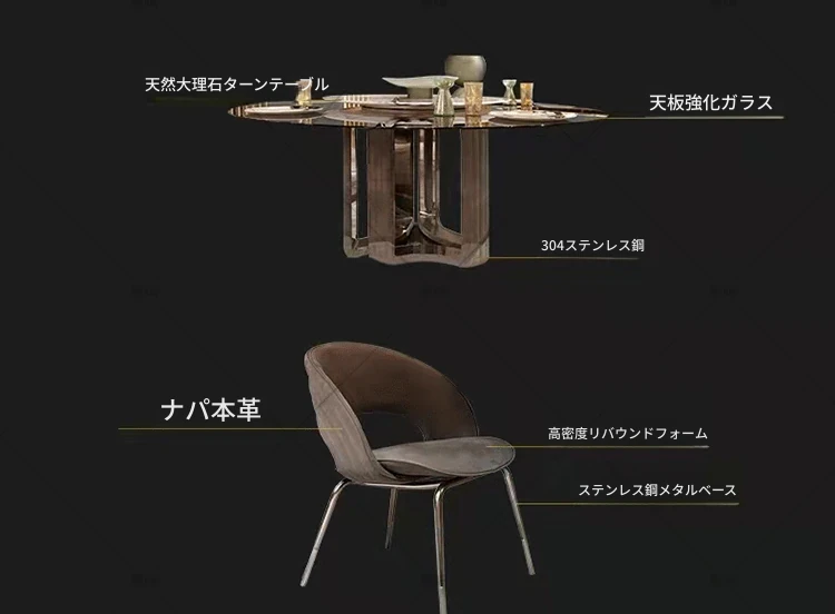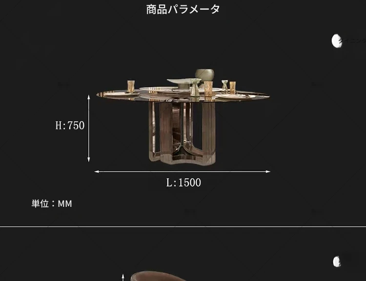 1.35メートル 強化ガラス天板 + 天然石 回転盤