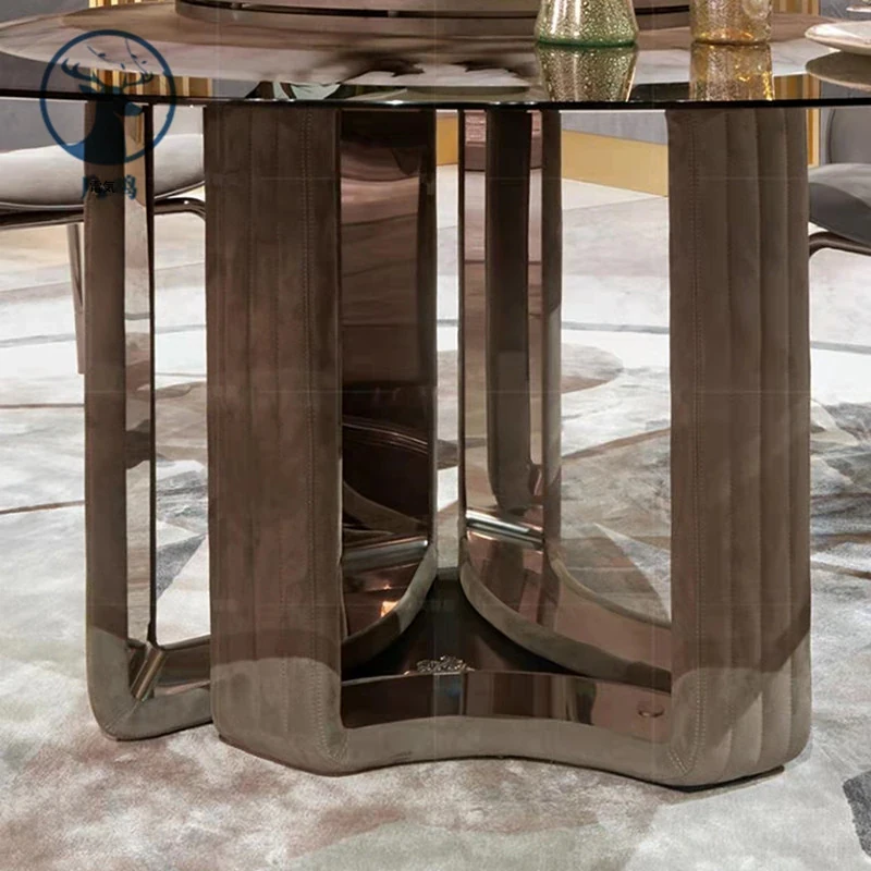 イタリアのラグジュアリーVisionnaire家具、豪華なエメラルドグリーン/ブルーサンドストーンのステンレス製ダイニングテーブル、別荘やレストランに最適!