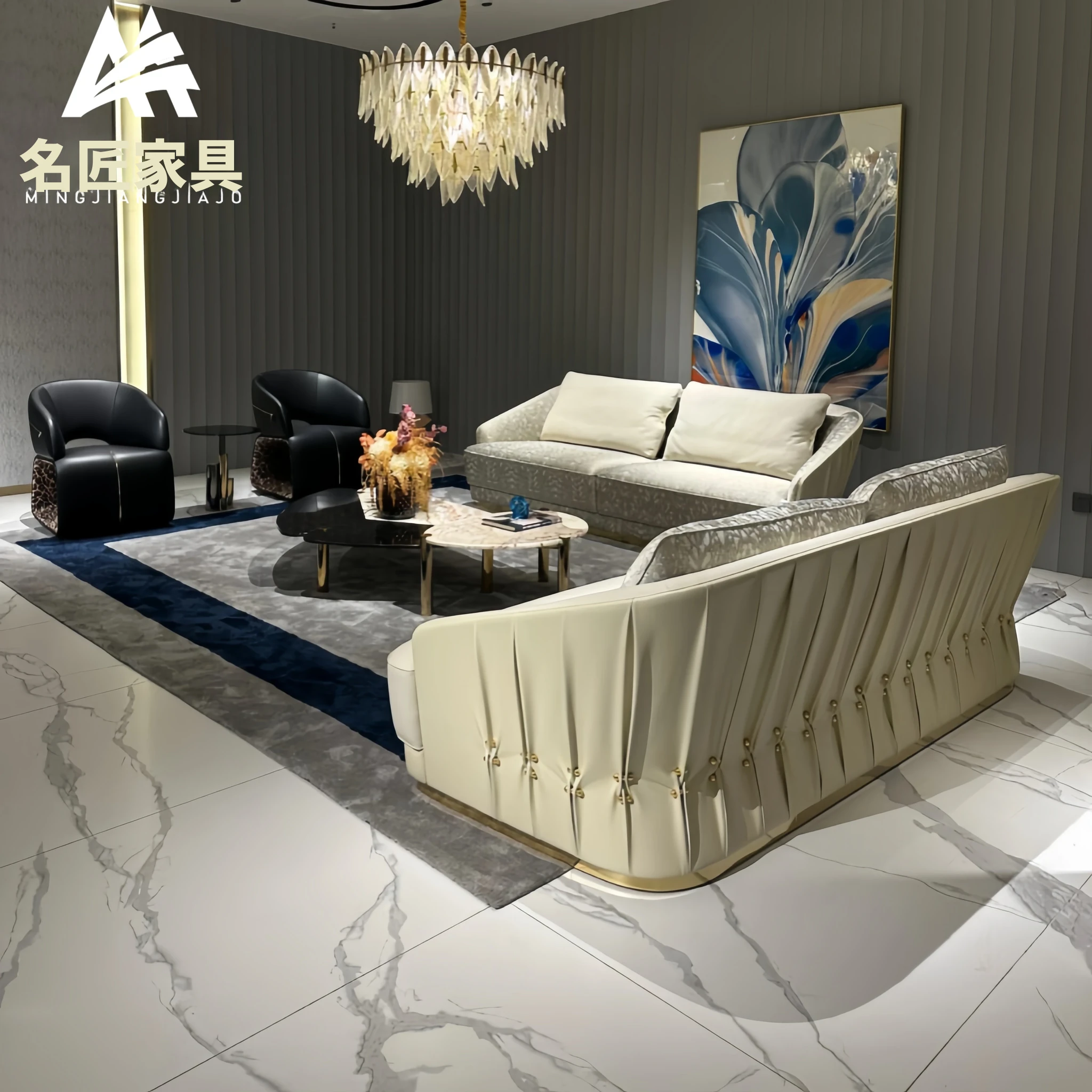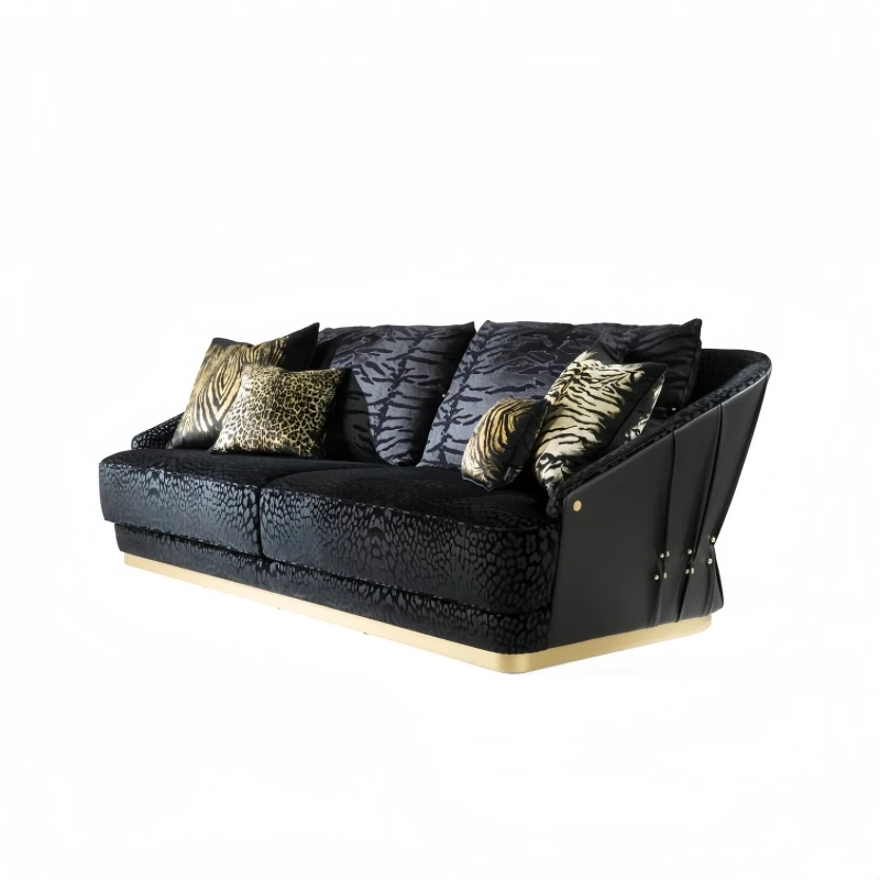 イタリアンミニマリズムのラグジュアリー、カーボリブラック折りたたみレザー家具。後現代的なシンプルさを兼ね備えた本革ソファセット。洗練されたデザインで、あなたの空間を一層引き立てます。