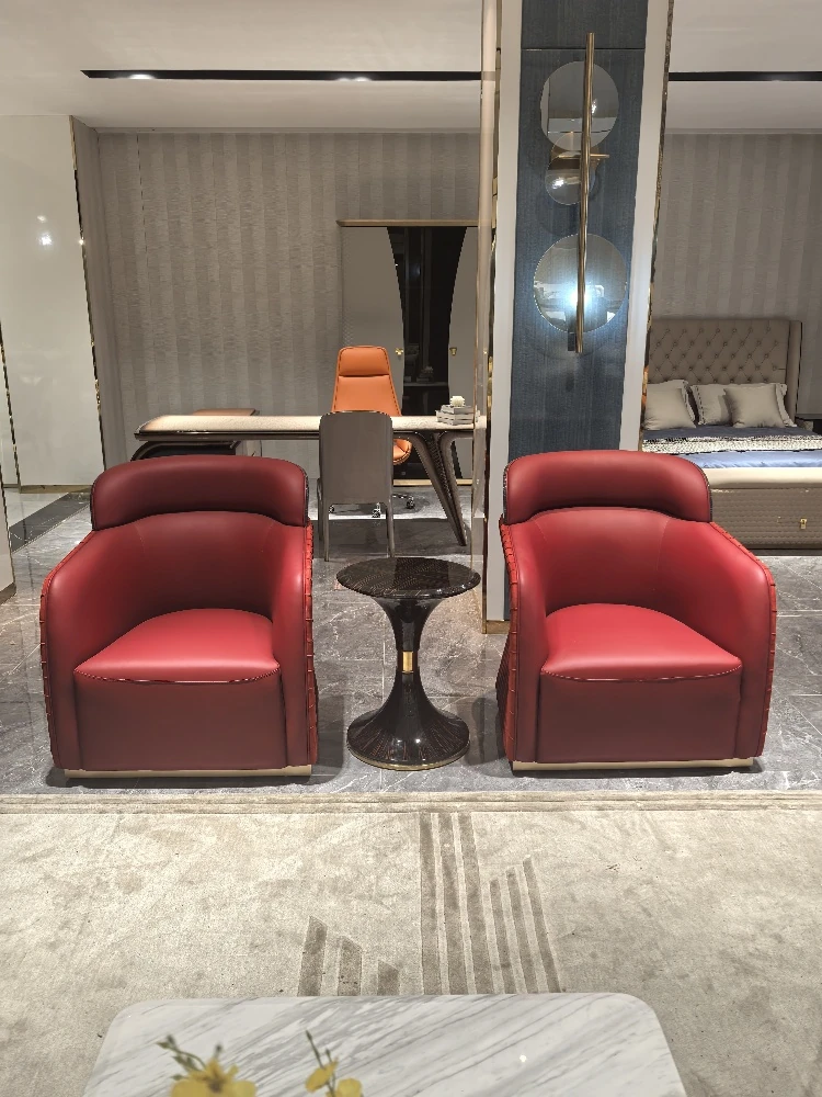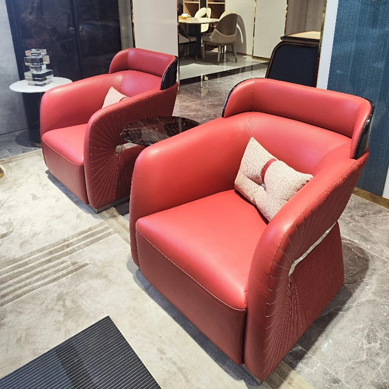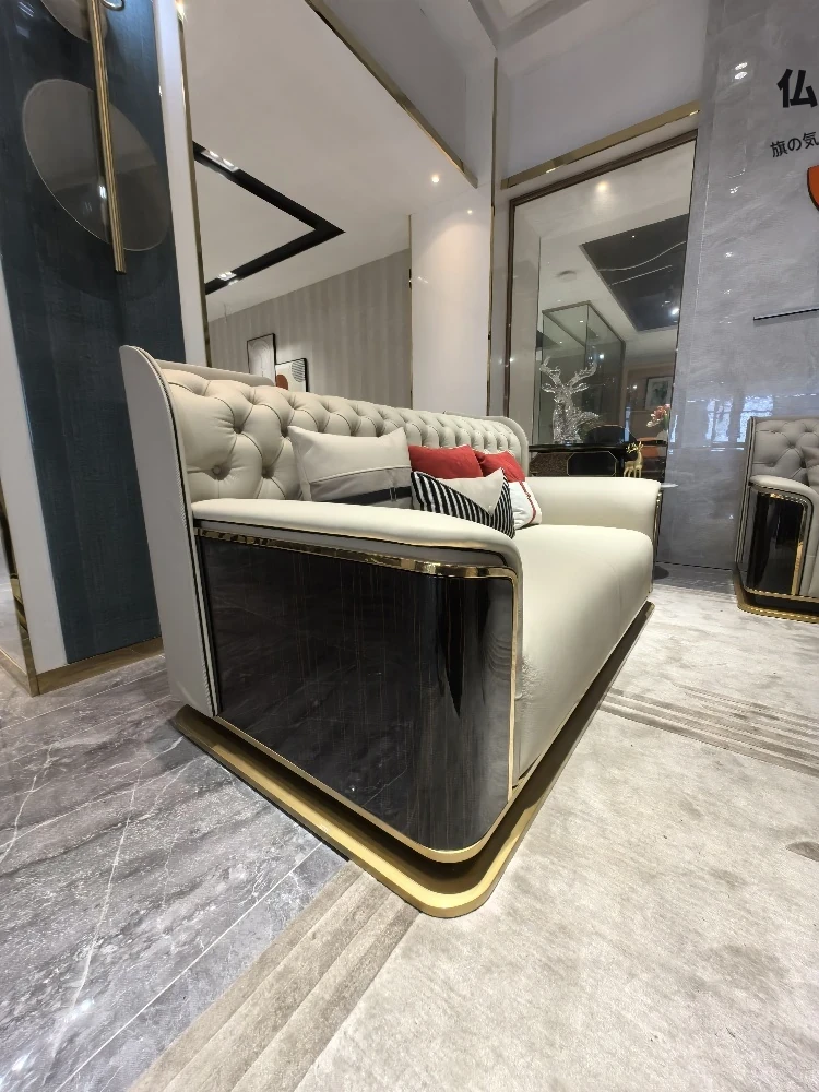 フェンディ本革ソファー|イタリアンラグジュアリーの別荘スタイル|曲線デザインで贅沢なリビングやKTVルームにぴったり!即納可能な高級家具。