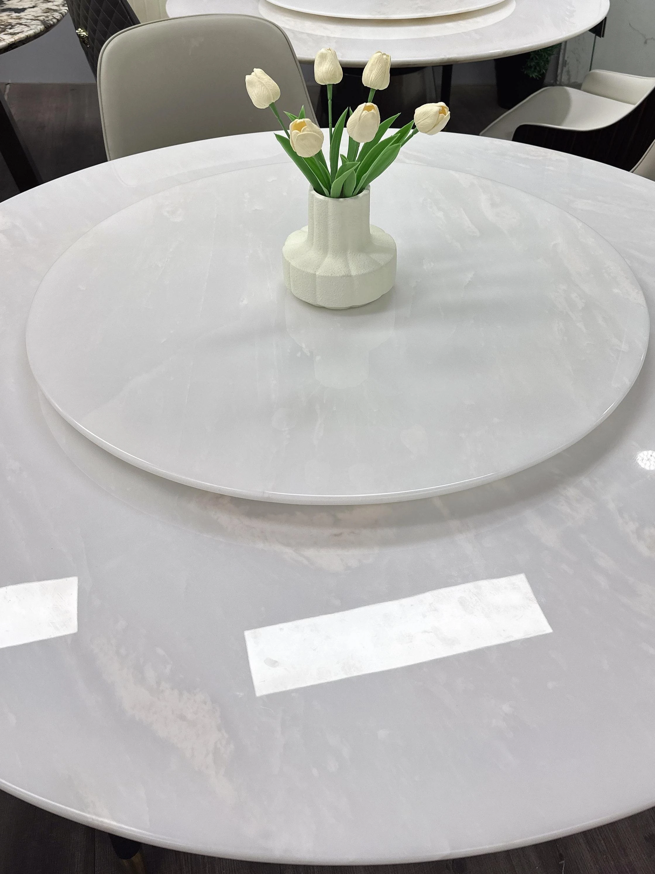 135CMフェンディホワイト天然ラグジュアリー石テーブル+80CMターンテーブル