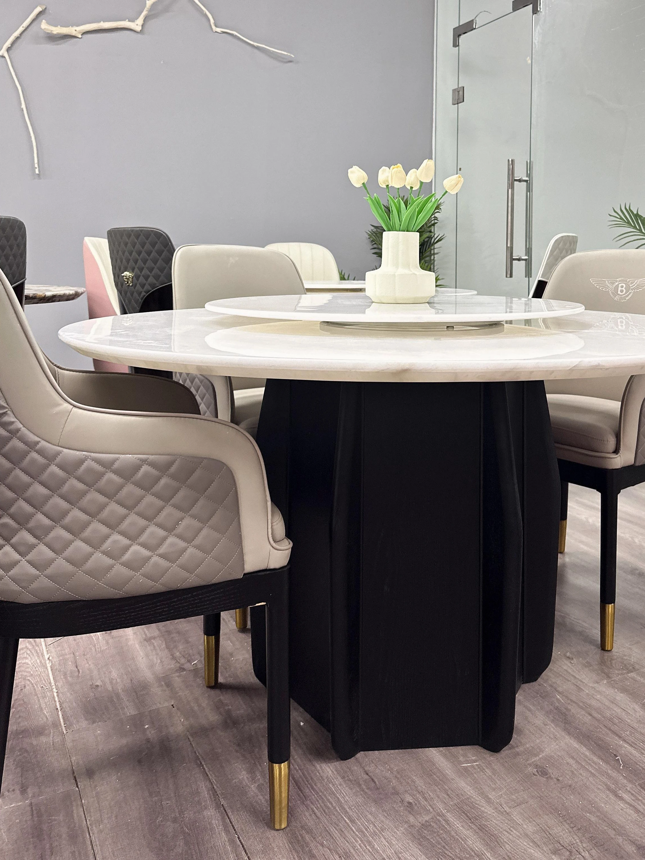 150CMフェンディホワイト天然ラグジュアリー石テーブル+90CMターンテーブル