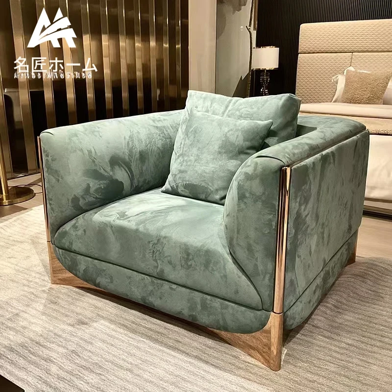 イタリアンラグジュアリーのリラックスソファチェア - モダンでシンプル、寝室やリビングにぴったりな本革の一人掛けソファ!快適な豆腐ブロックデザインで、くつろぎのひとときを提供します。