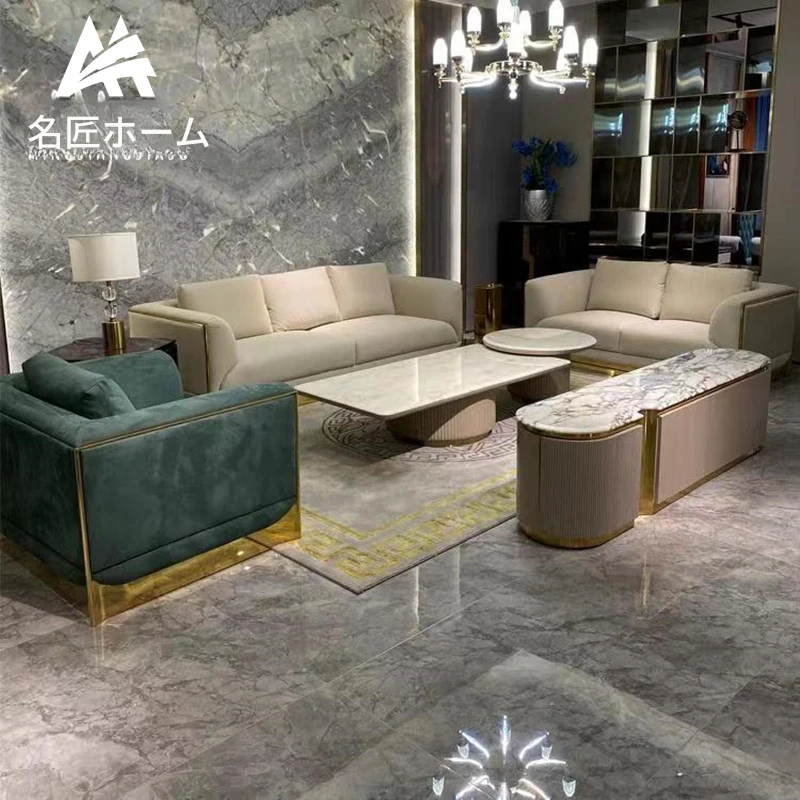 フェンディ本革ソファー|イタリアンラグジュアリーの別荘スタイル|曲線デザインで贅沢なリビングやKTVルームにぴったり!即納可能な高級家具。
