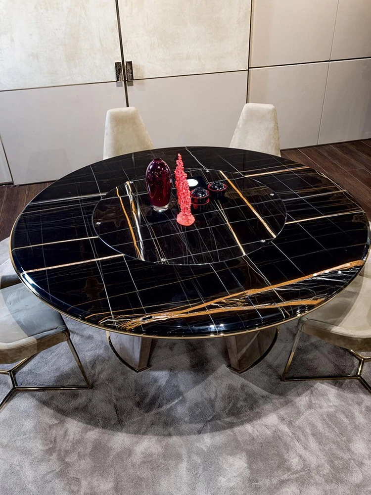イタリアンラグジュアリー現代ダイニングテーブルセット|高級ヴィラや香港スタイルの家庭にぴったり!天然大理石のラウンドテーブルで、優雅な食事体験を実現。おしゃれで洗練された空間を演出します!