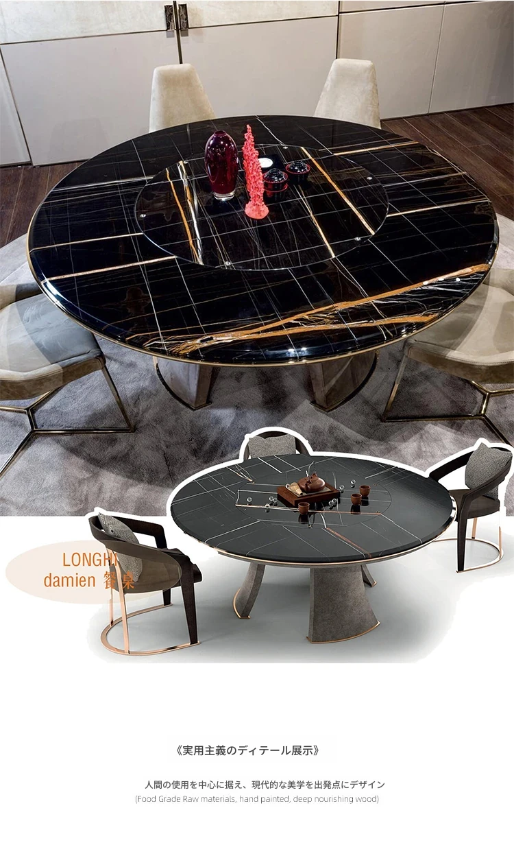 ロングイ・ダミアン イタリアンラグジュアリー 大理石製ラウンドダイニングテーブル&チェア 豪華な別荘にぴったりのデザイン 小紅書で注目のスタイリッシュな一品!