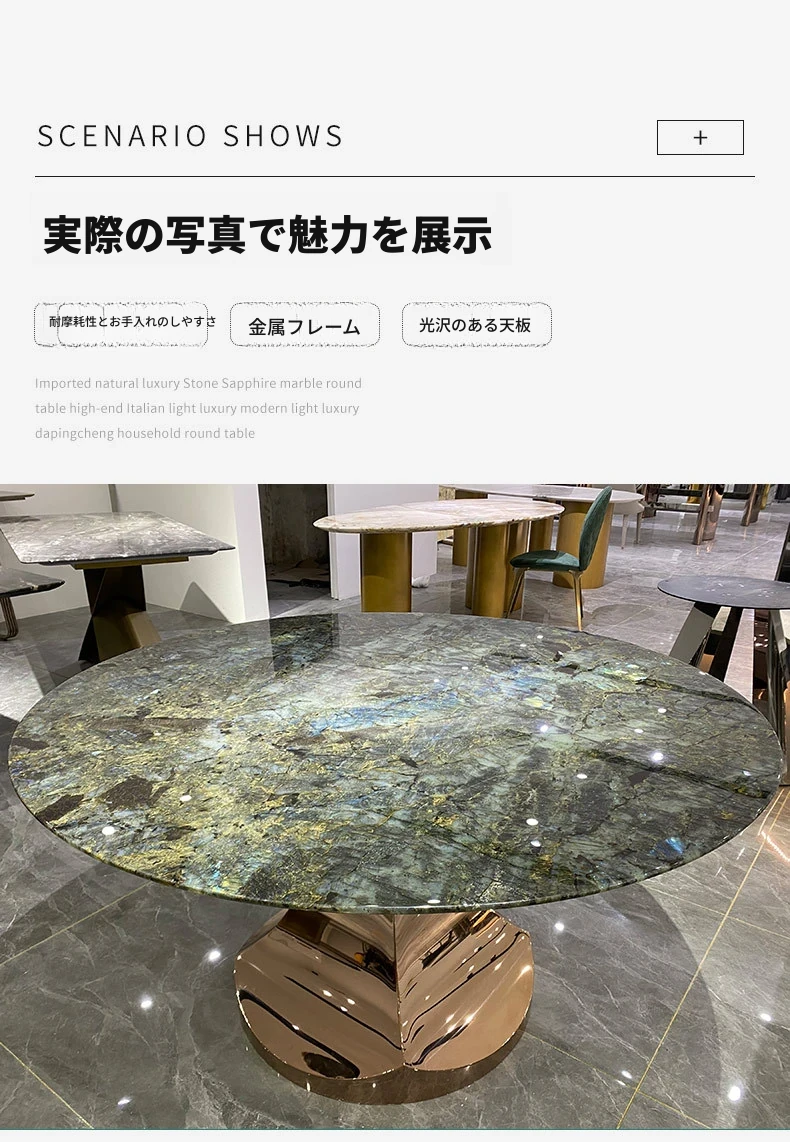 【インポート最高級ブルージェイド口ラグジュアリーストーン】Φ150円卓