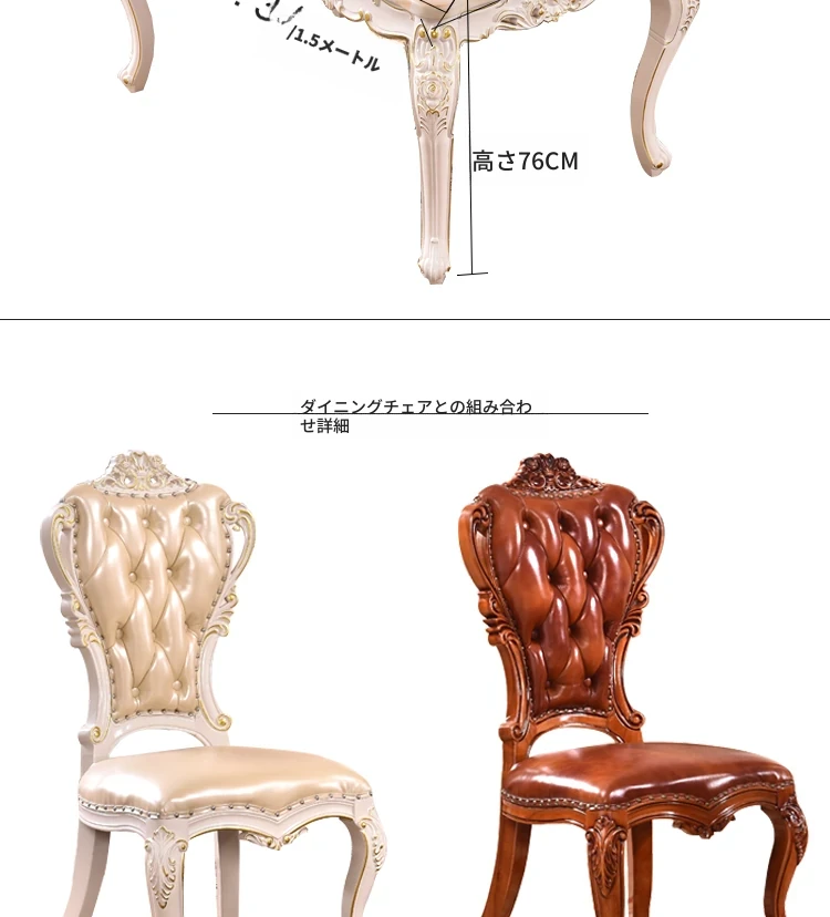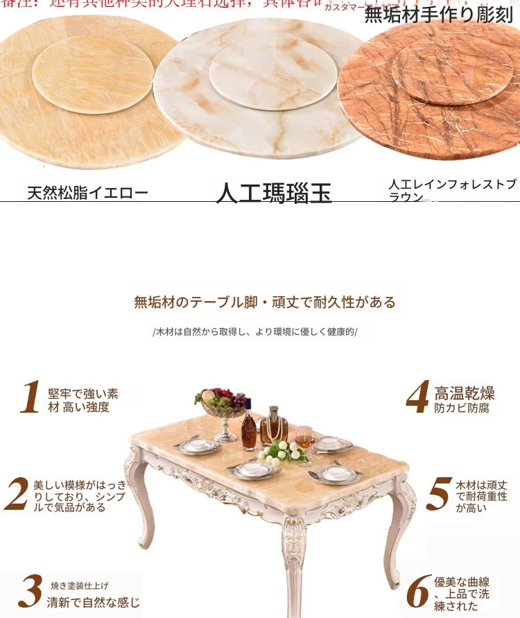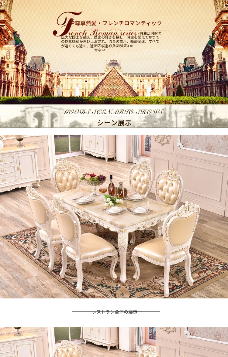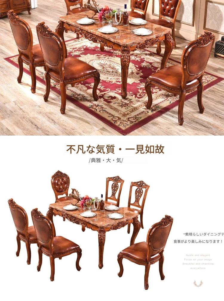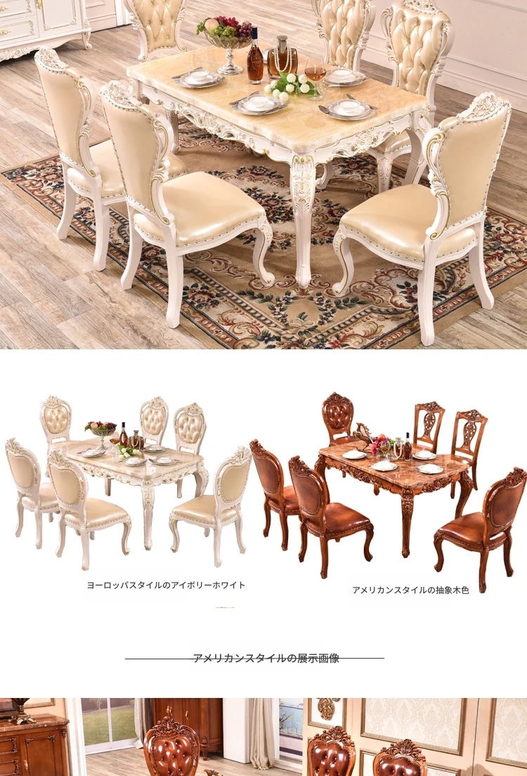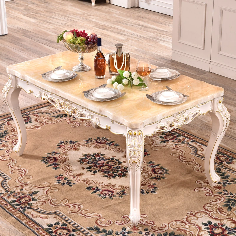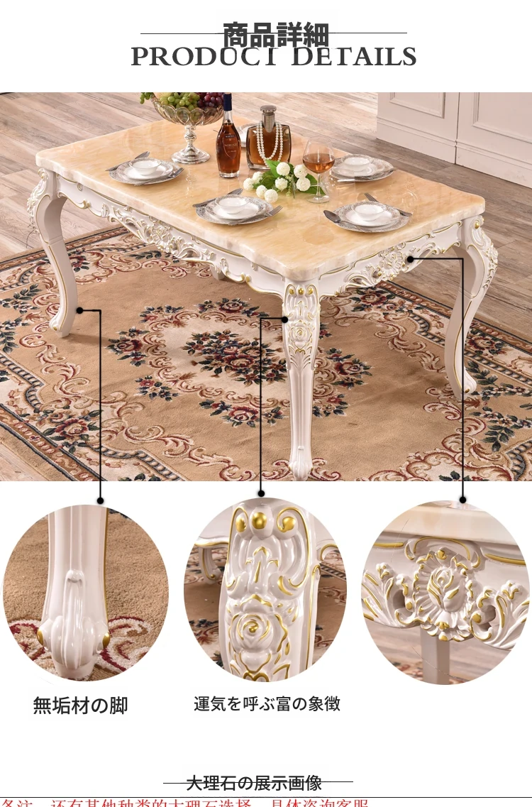 高級ヨーロッパスタイルの天然大理石ダイニングテーブル - 豪華な1.3m・1.5mの長方形デザイン、精緻な木彫り仕上げ、1テーブル6チェアの完璧なコンビネーション!あなたの食卓を特別な空間に変えます。