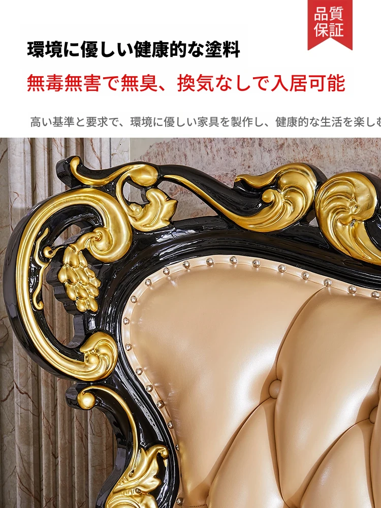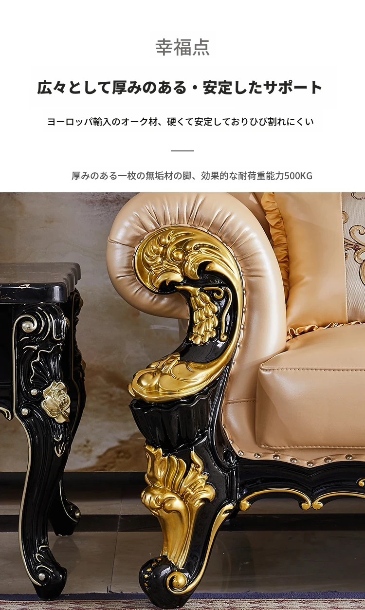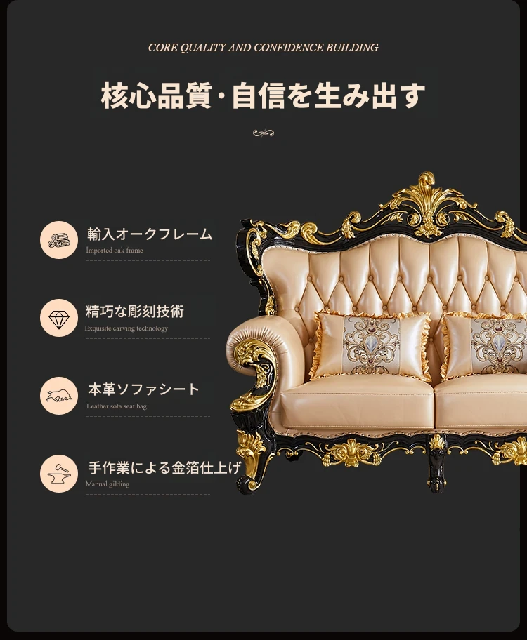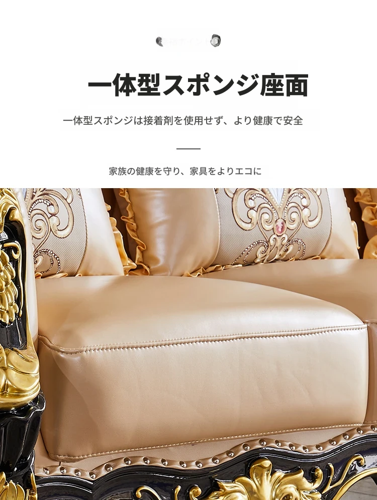 豪華なブラックエボニー色の欧州スタイルソファセット - 大型リビングにぴったりの高級真皮家具コンビネーション。優雅さと快適さを兼ね備えた贅沢な別荘の必需品!