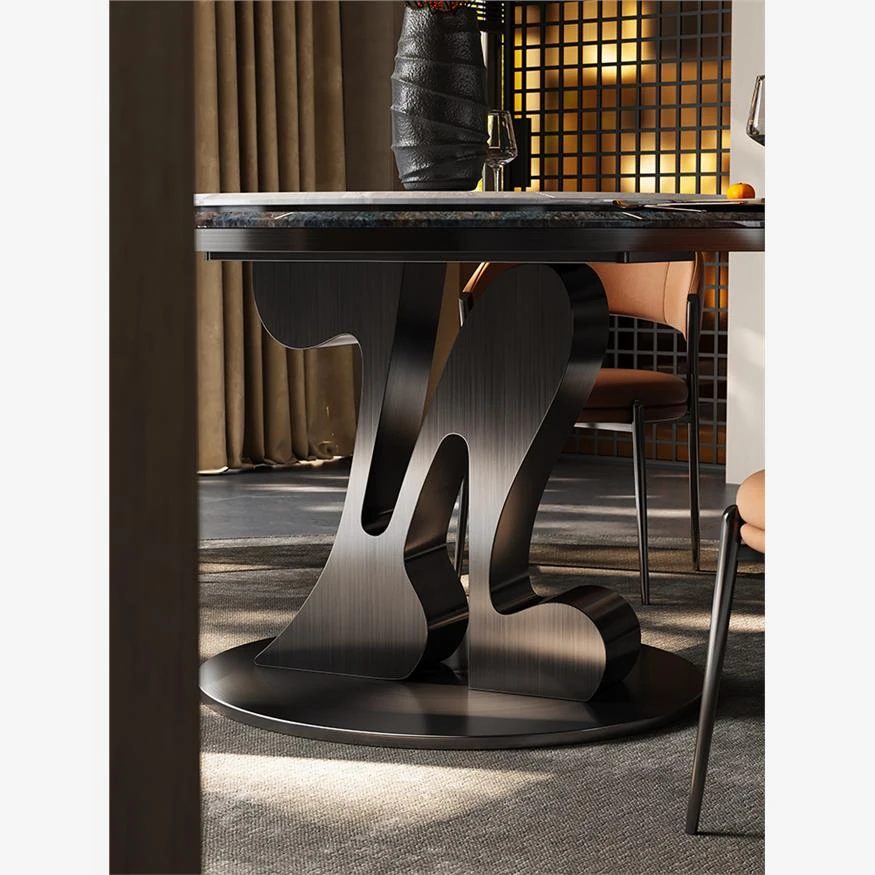 【アマゾンブルー/グレーのチタン金】1.5メートルのダイニングテーブル+カリ氷玉回転盤