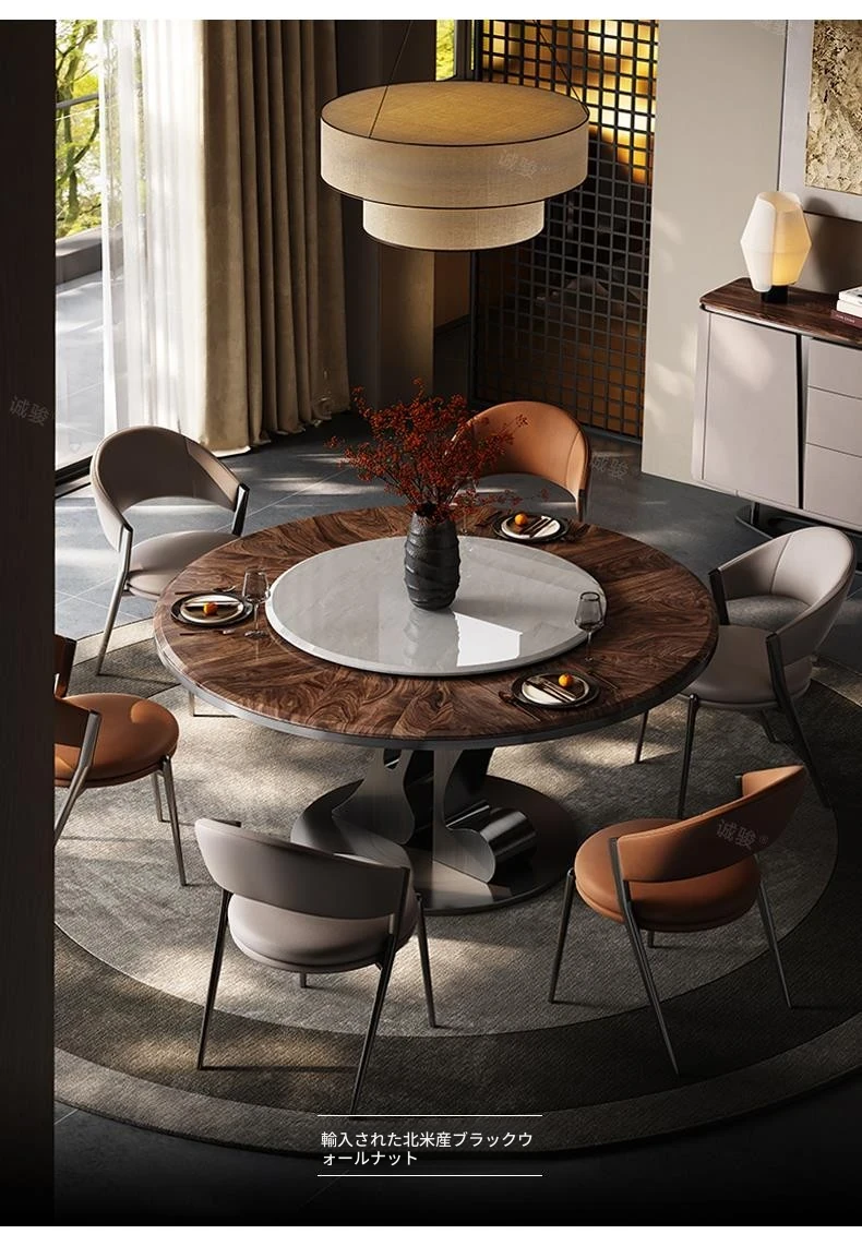 【アマゾンブルー/グレーのチタン金】1.7メートルのダイニングテーブル+カリ氷玉回転盤+ダイニングチェア*6