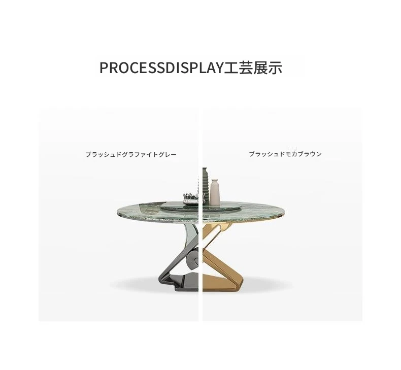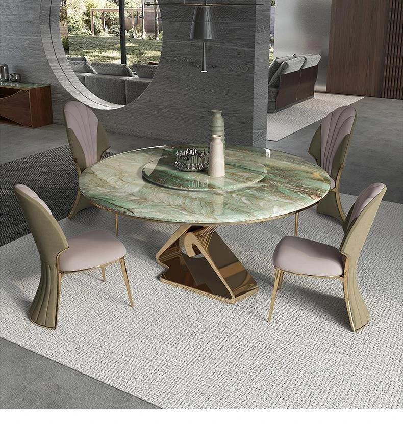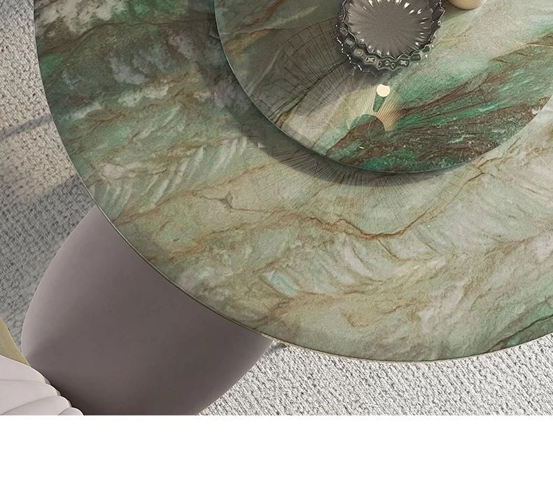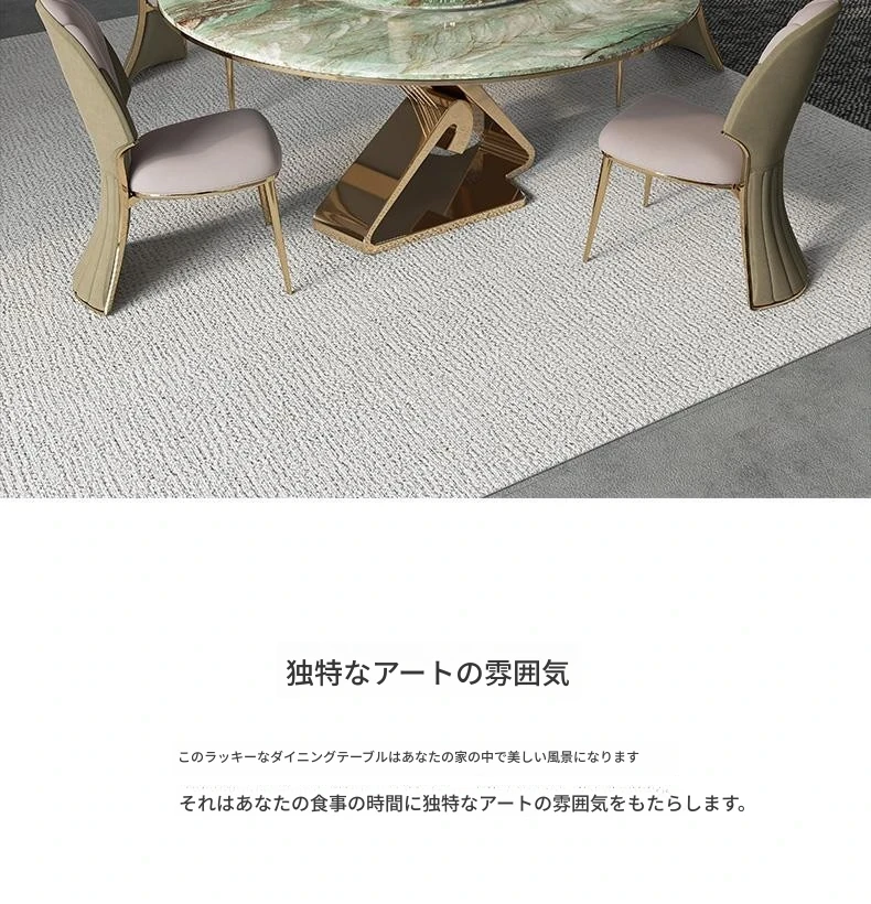 豪華な大理石ダイニングテーブル - ヴィラにぴったり!回転式デザインで、イタリアンモダンな極簡スタイルの天然石製ラウンドテーブルセット。洗練された雰囲気を演出し、特別な食事のひとときを提供します。
