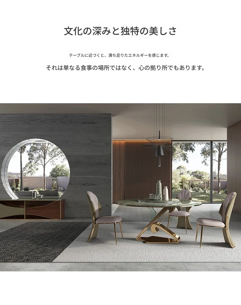 イタリアンミニマルデザイン大理石ダイニングテーブル2023新作!高級感溢れるラグジュアリーな円形テーブルで、広々とした邸宅にぴったり。スタイリッシュなインテリアを演出し、特別なひとときをお届けします。
