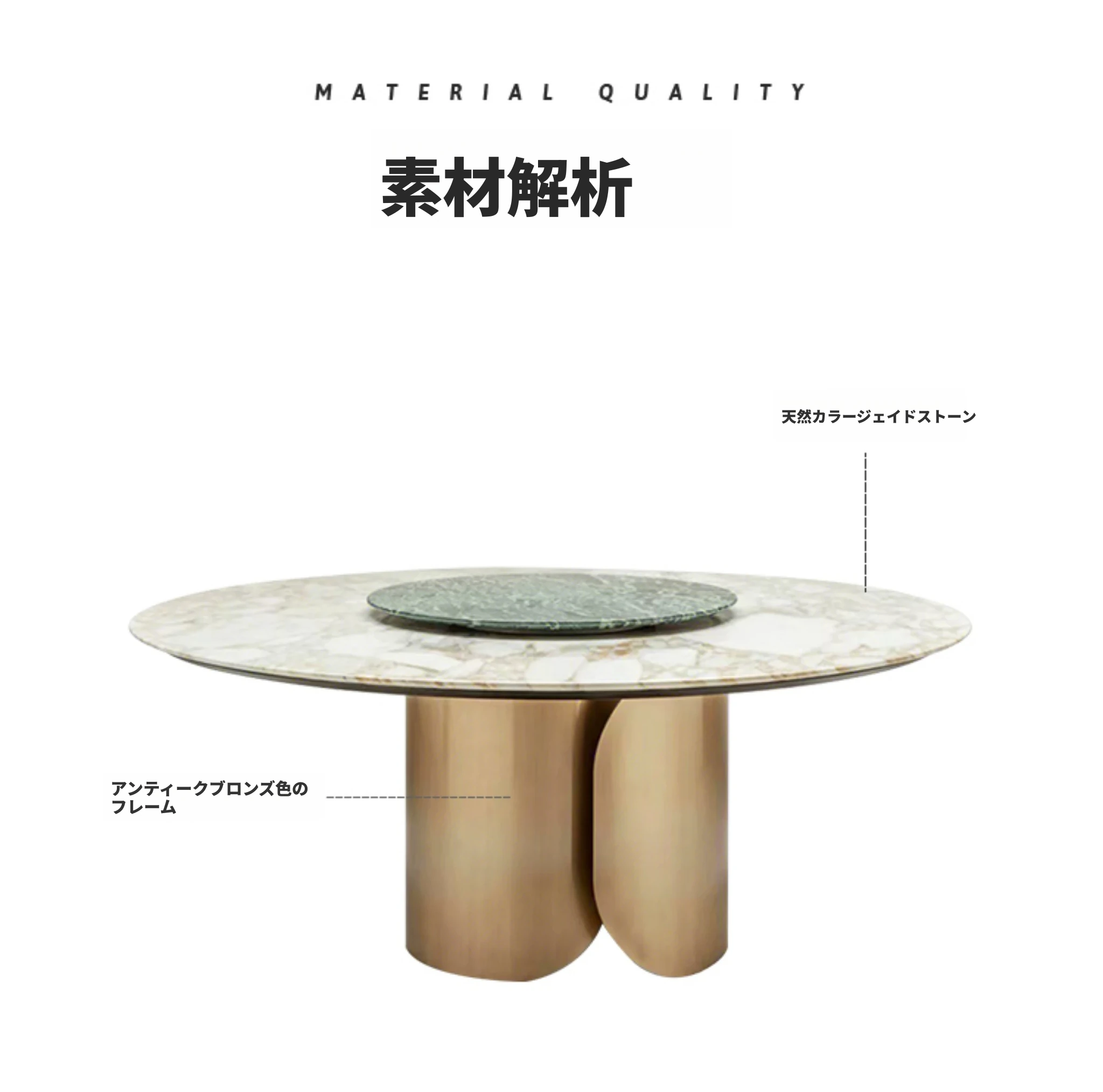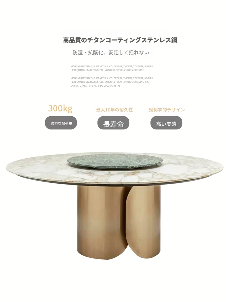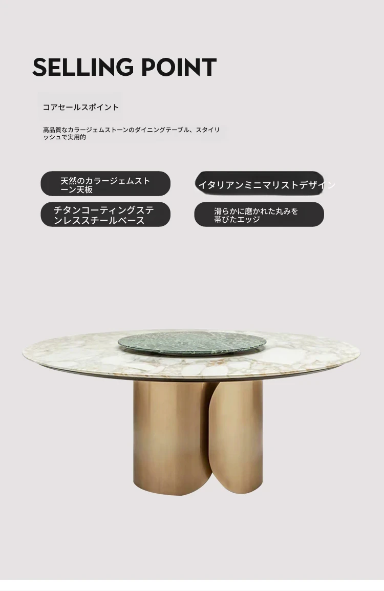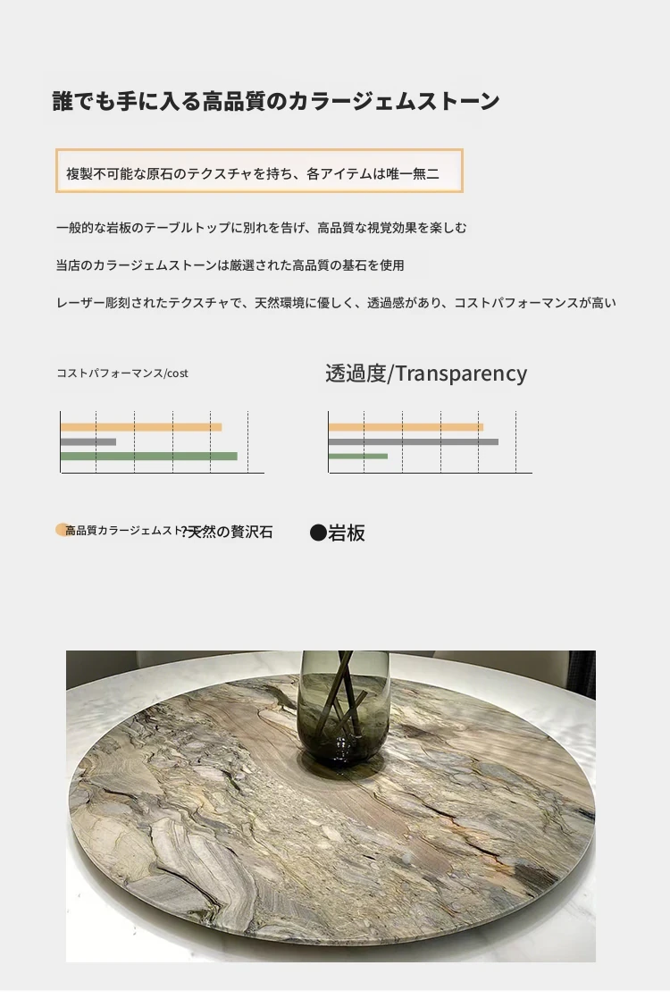 天然スーパークリスタルストーンのダイニングテーブル&チェアセット - コンパクトなラウンドデザイン、ハイエンドな大理石仕上げで、洗練された空間を演出します。スタイリッシュなリビングにぴったりのラグジュアリーなひとときをお楽しみください。