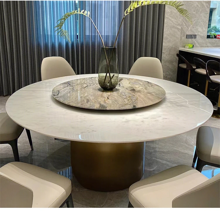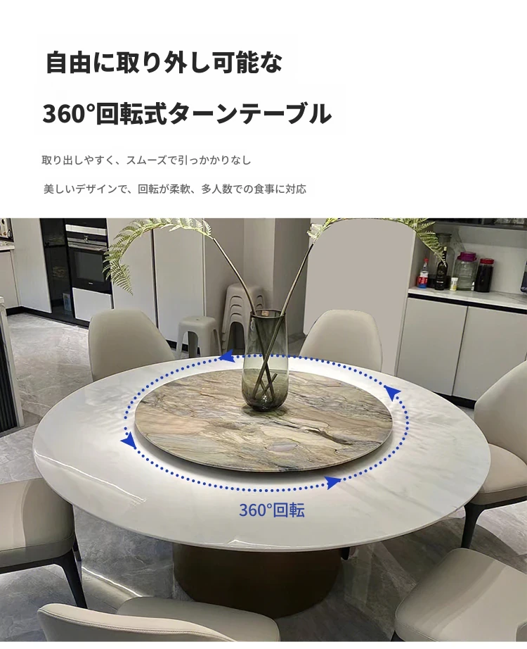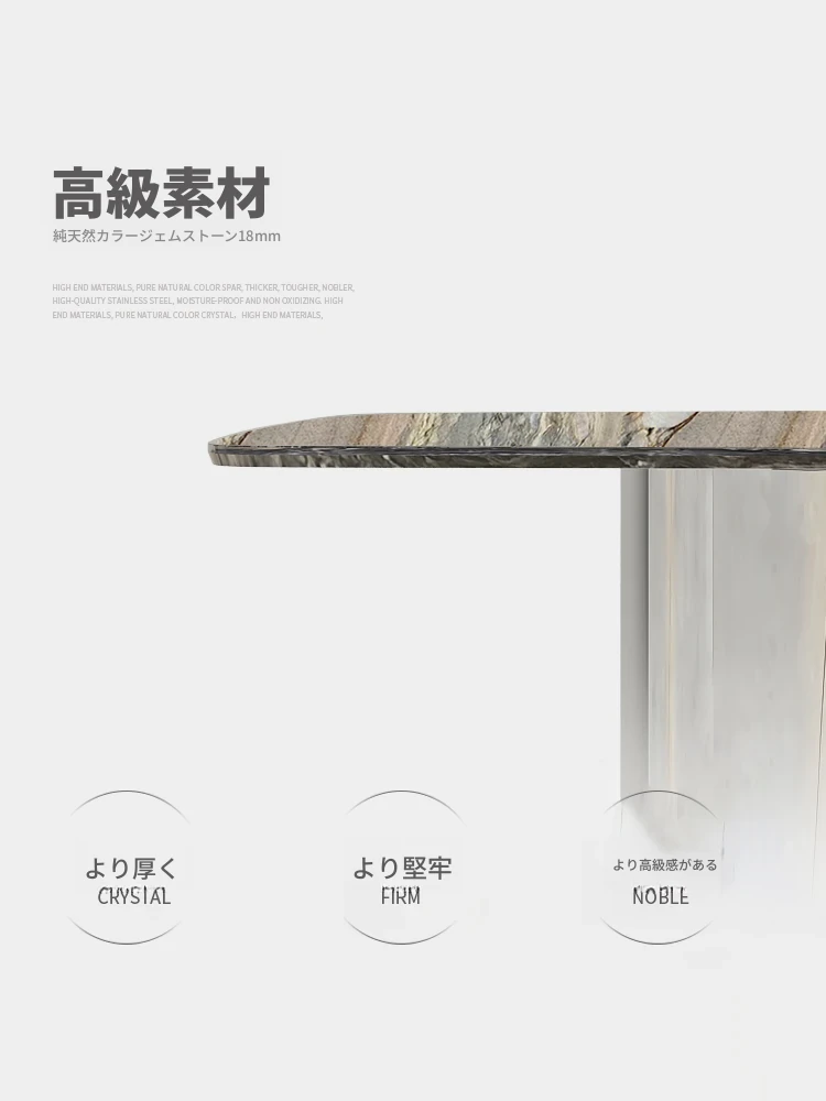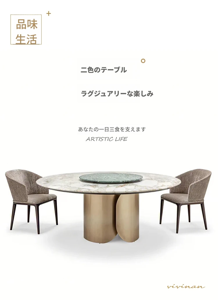 天然スーパークリスタルストーンのダイニングテーブル&チェアセット - コンパクトなラウンドデザイン、ハイエンドな大理石仕上げで、洗練された空間を演出します。スタイリッシュなリビングにぴったりのラグジュアリーなひとときをお楽しみください。