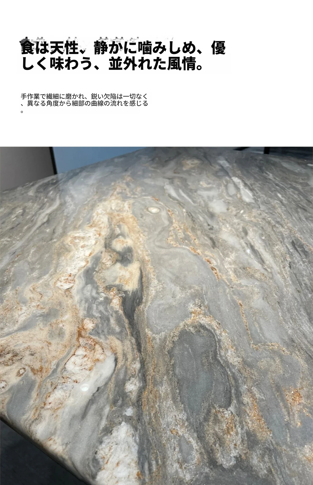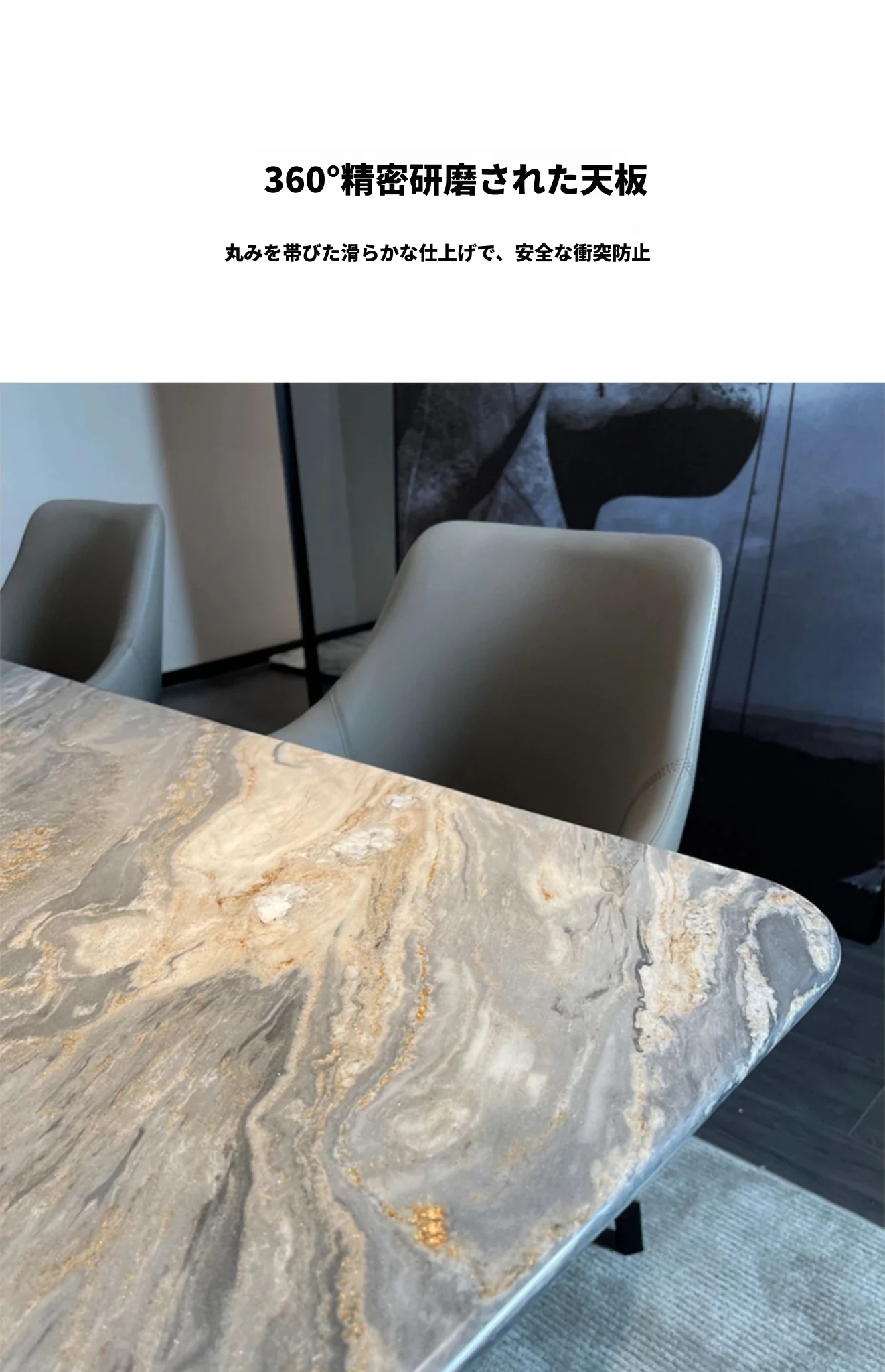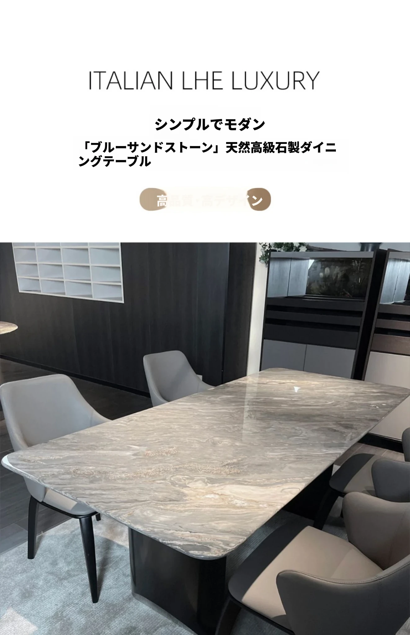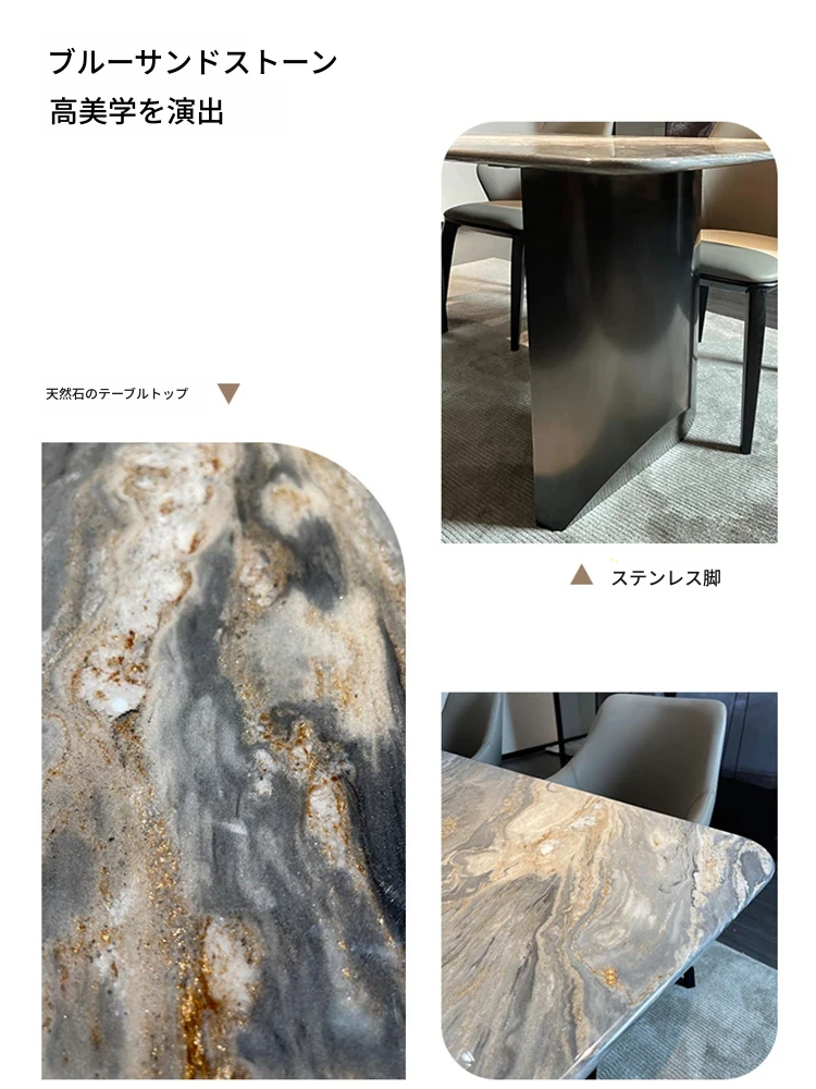 高級感あふれる天然大理石製の豪華ダイニングテーブル - シンプルでモダンなブルーゴールドのデザイン、別荘や広々としたリビングにぴったり。どんな空間にも調和する極上の一品です。