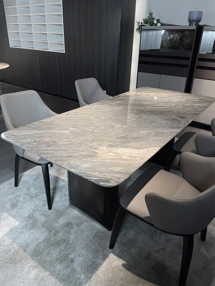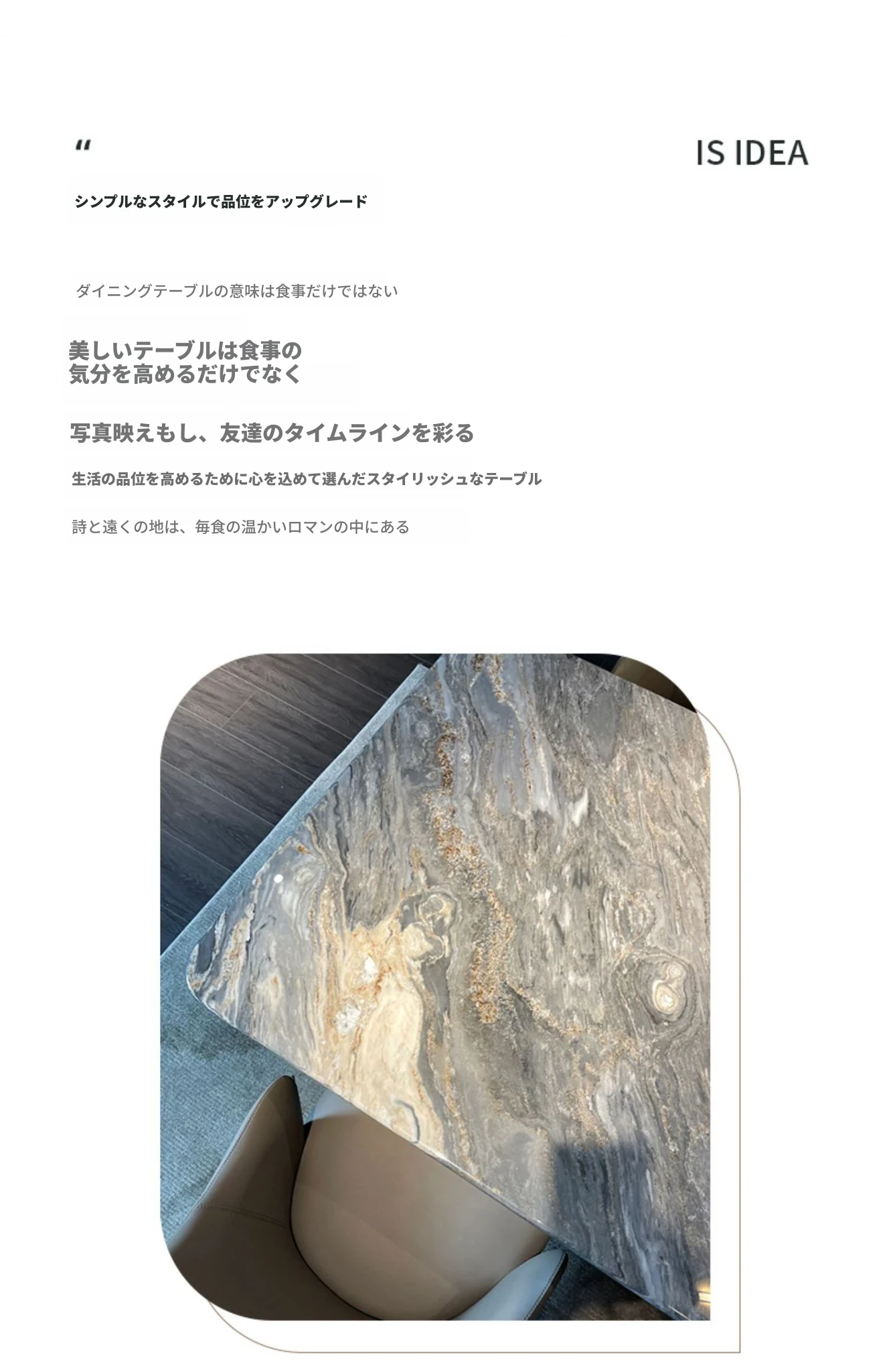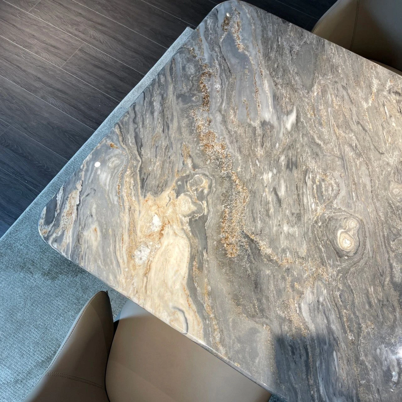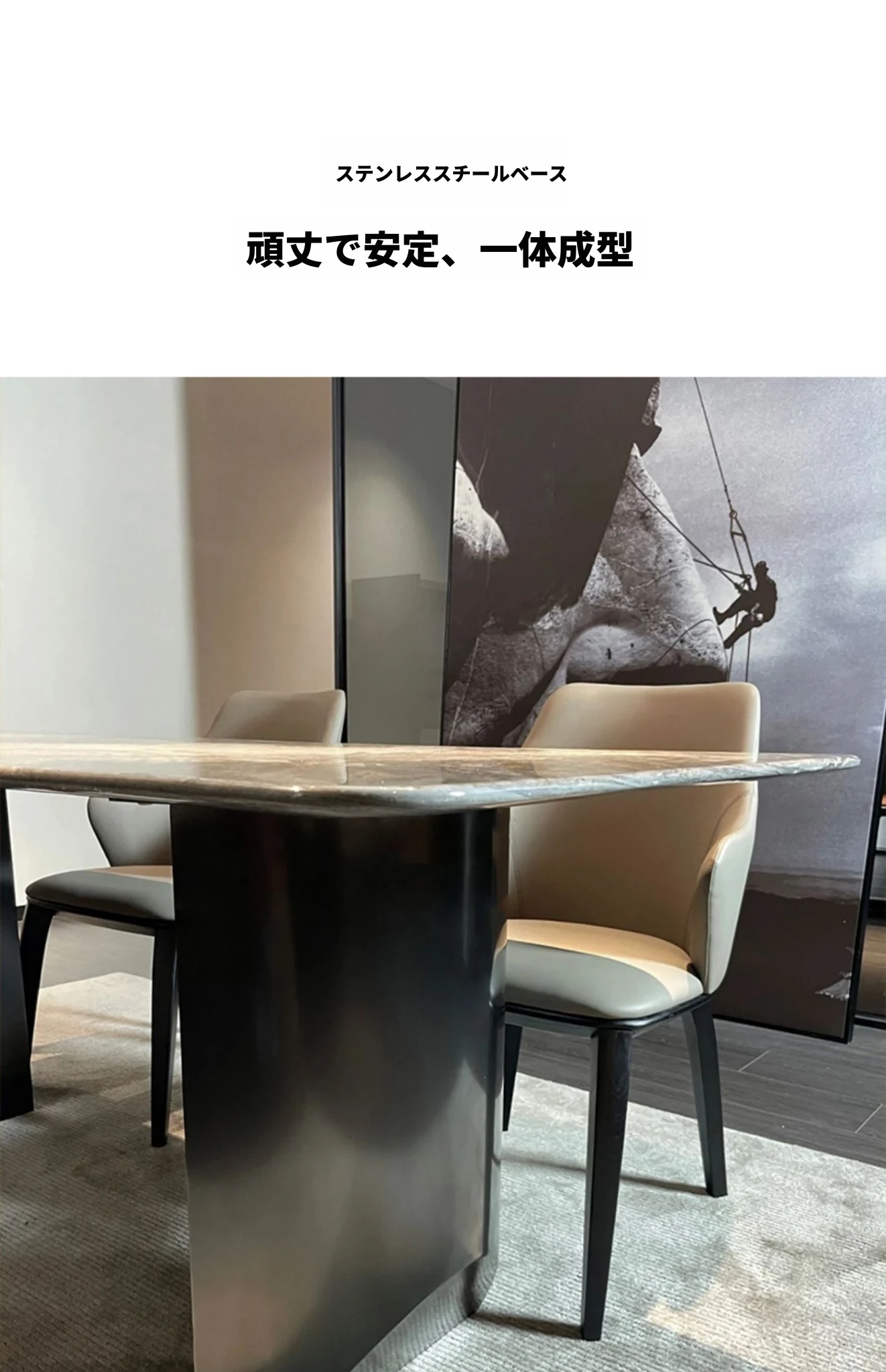 高級感あふれる天然大理石製の豪華ダイニングテーブル - シンプルでモダンなブルーゴールドのデザイン、別荘や広々としたリビングにぴったり。どんな空間にも調和する極上の一品です。