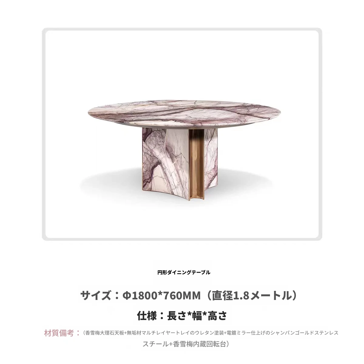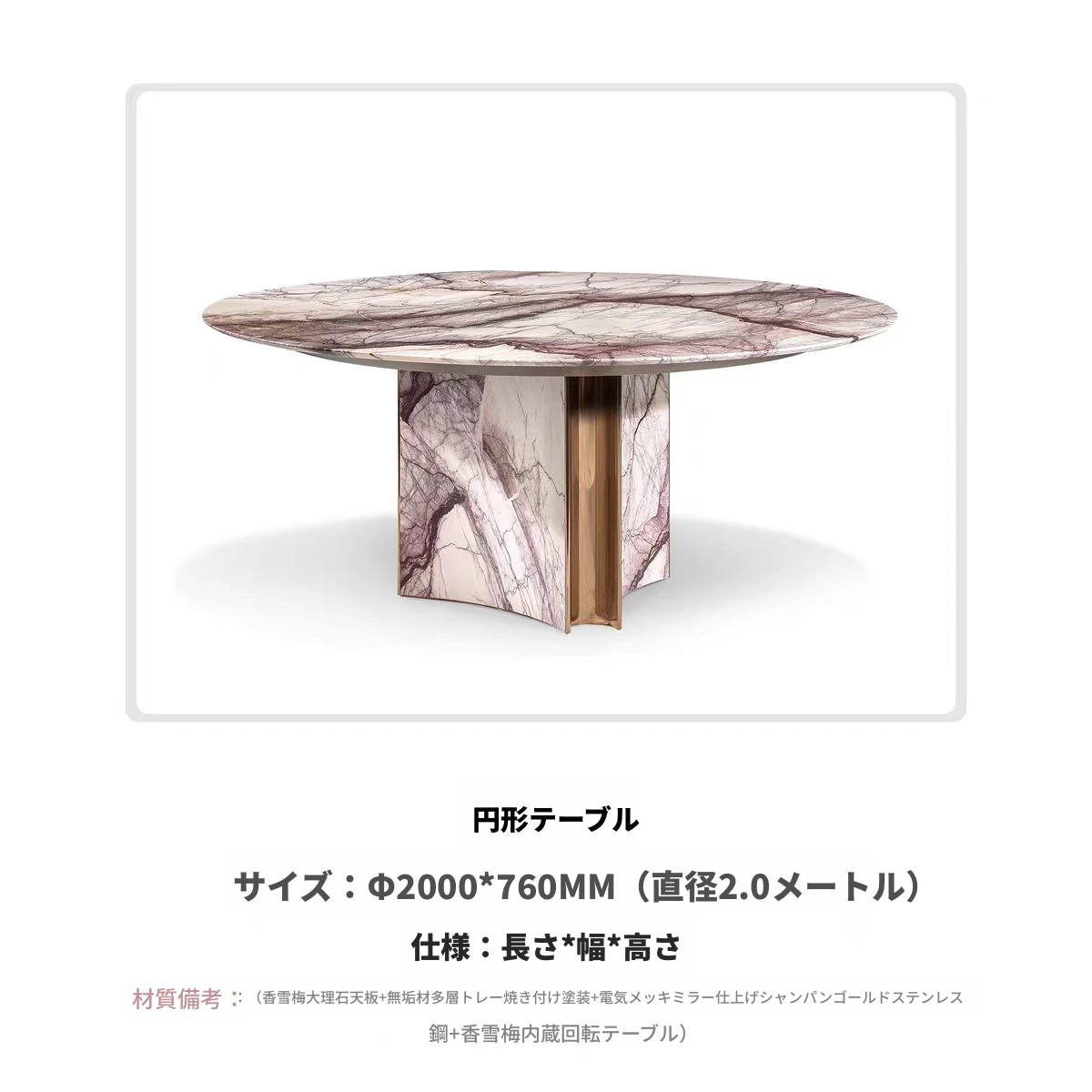 デザイナーセレクション!高級感あふれるイタリアンマーブルのしずく型ダイニングテーブル。優雅なスモーキーピンクの天然石で、豪華な別荘や広々としたリビングに最適。洗練された食卓を演出します!