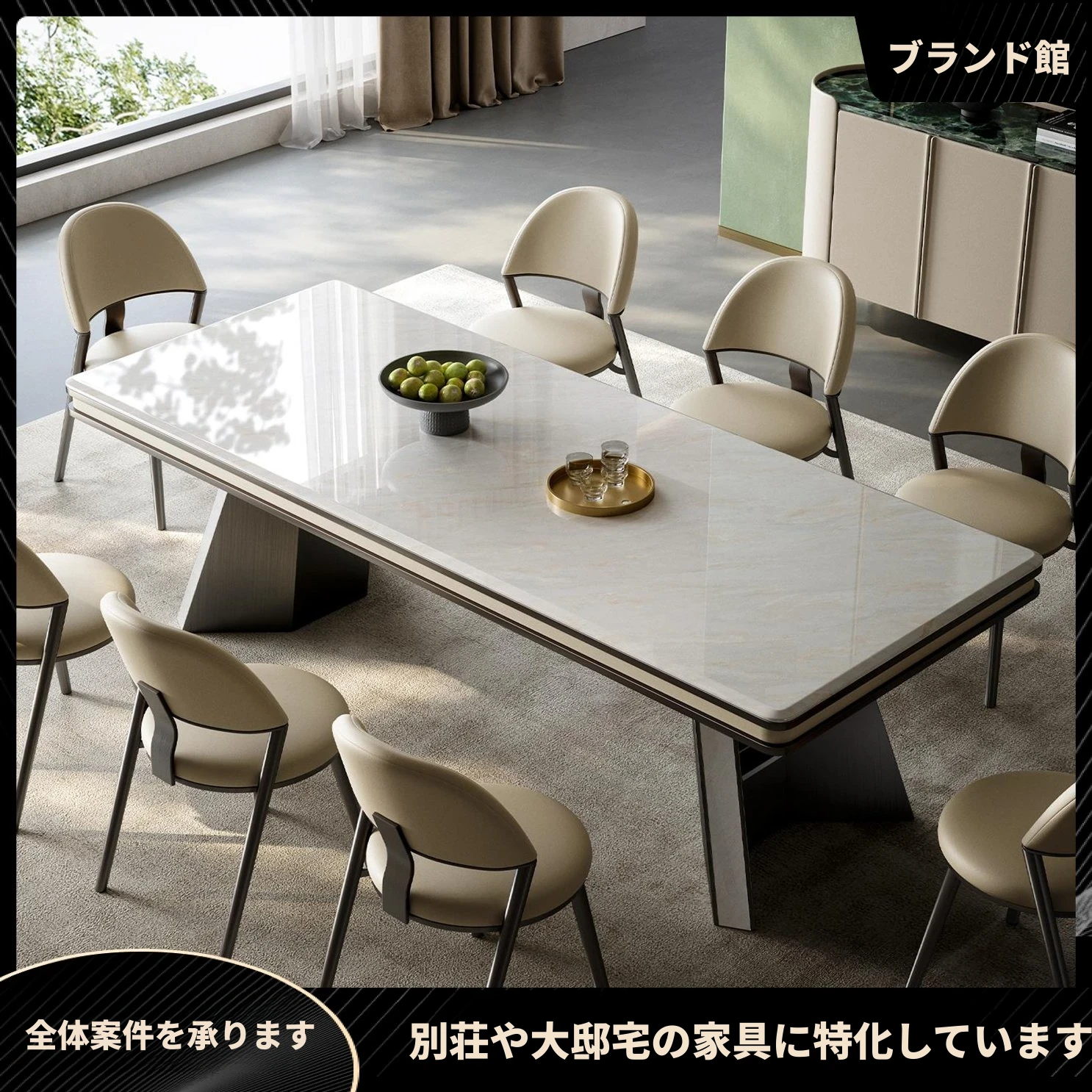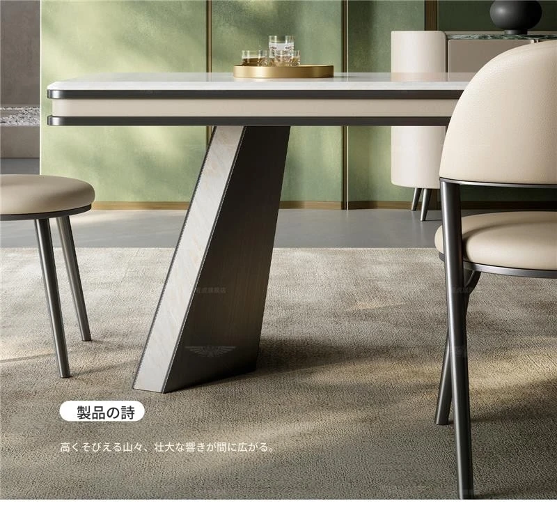 天然石の豪華なダイニングテーブル1.8m【Majestic壮大】+ダイニングチェア*6