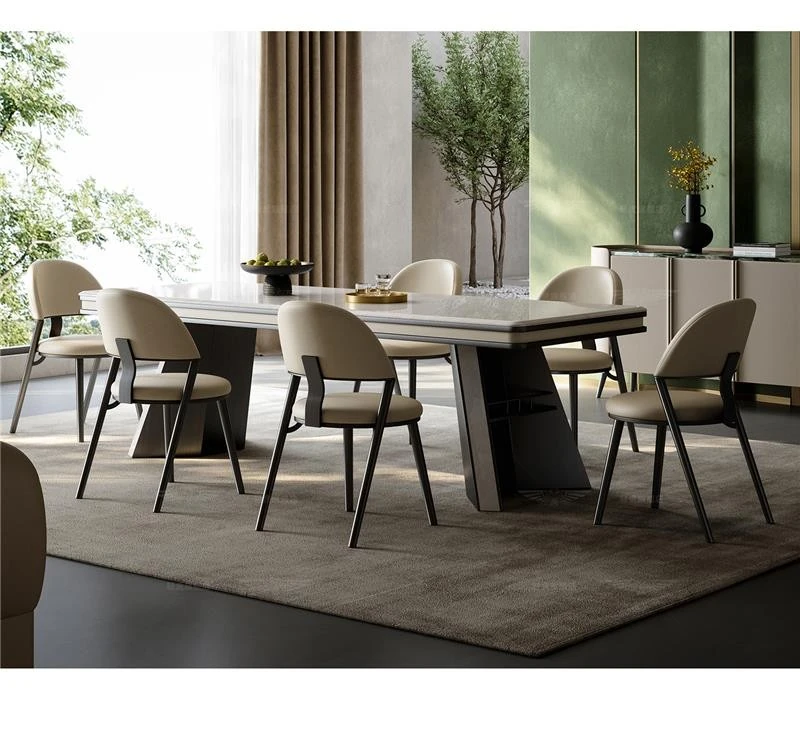 天然石の豪華なダイニングテーブル2.0m【Majestic壮大】+ダイニングチェア*6