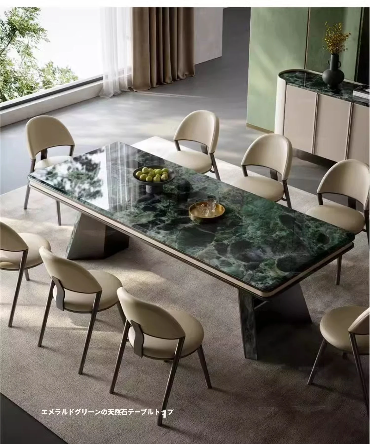 天然豪華石のダイニングテーブル2.0メートル【Majestic壮大】+ダイニングチェア*8