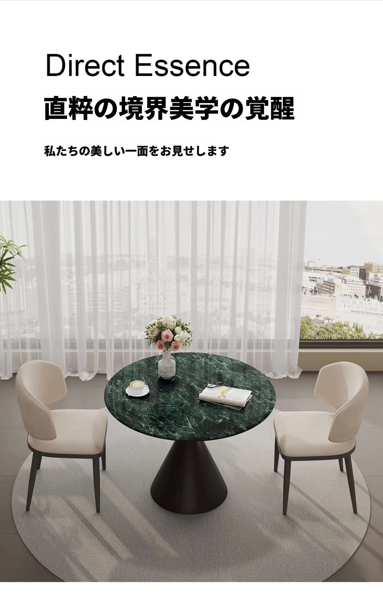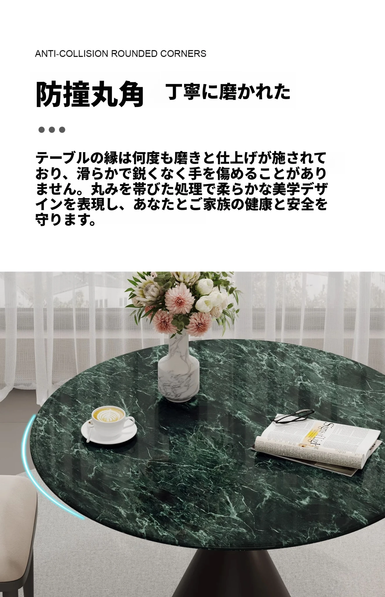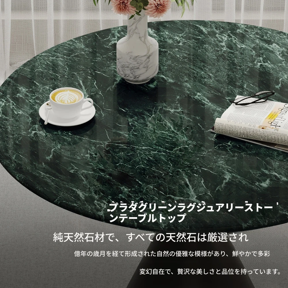 高級感あふれる天然石製大花柄丸型ダイニングテーブル - 小型住宅にぴったりの高級会談テーブル、ティーテーブル、食卓としても最適!