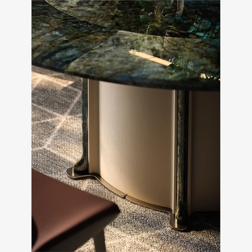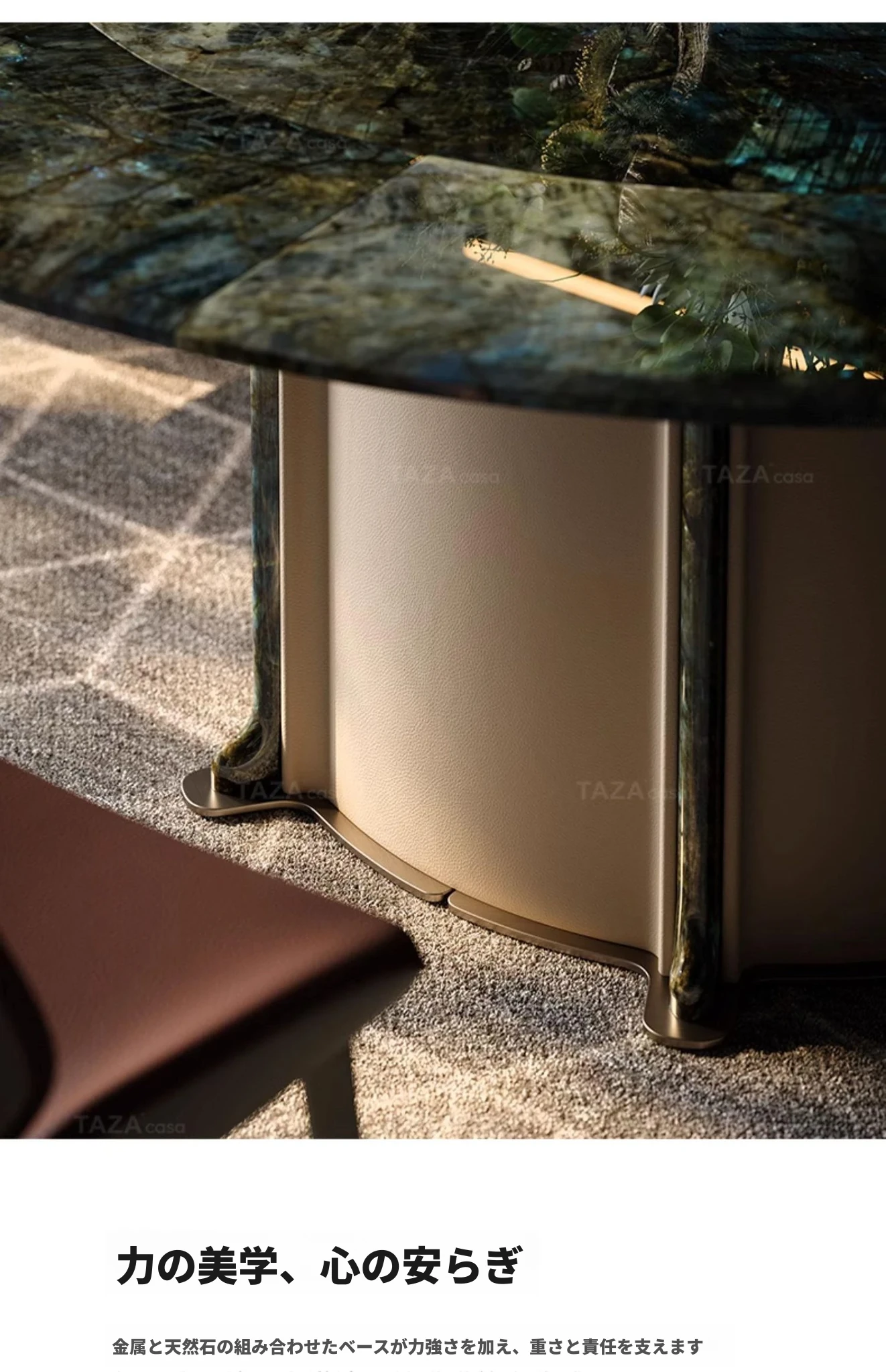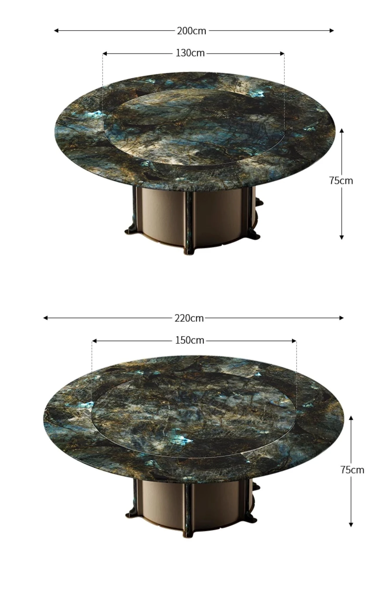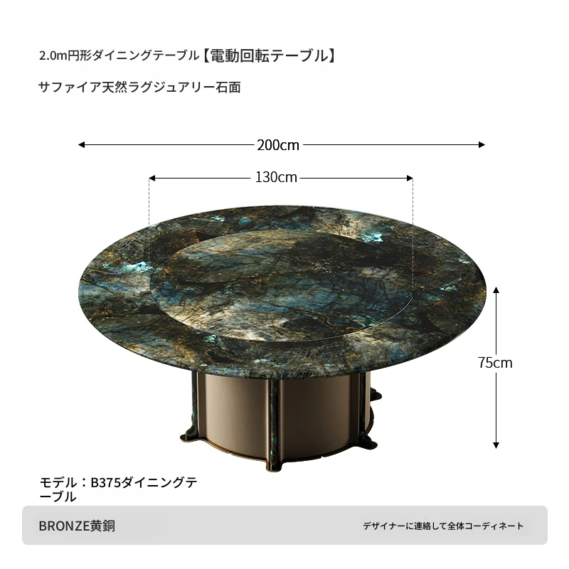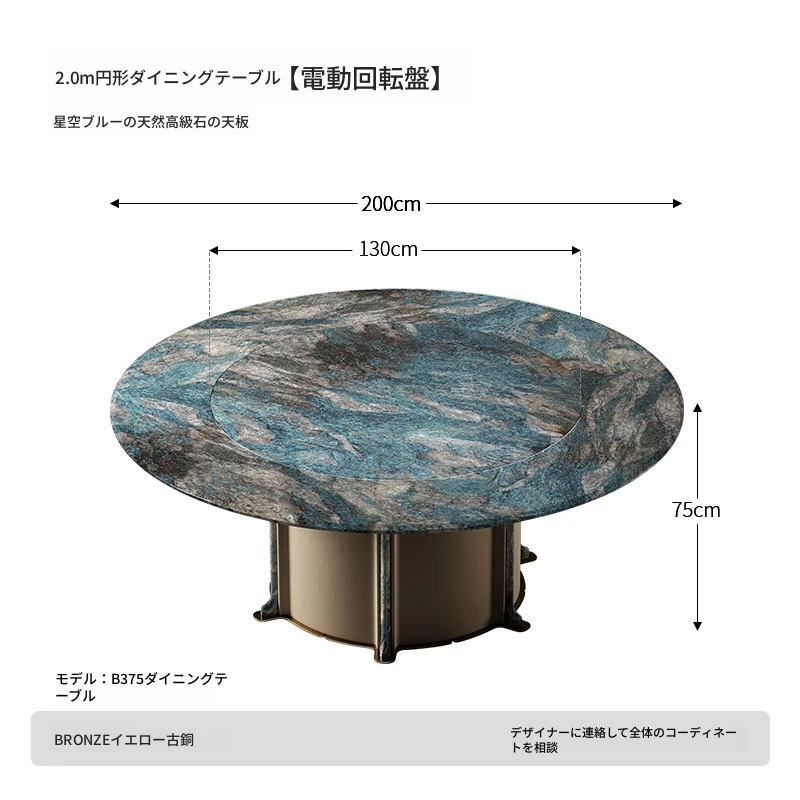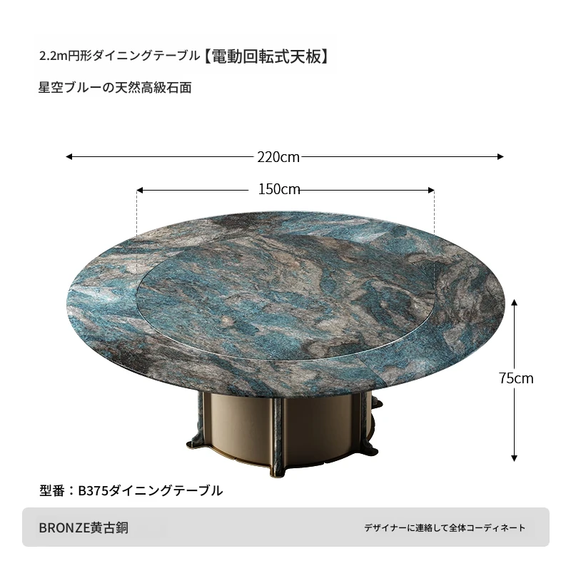 2.2m電動ダイニングテーブル[スターryブルーラグジュアリーストーン天板+ターンテーブル]
