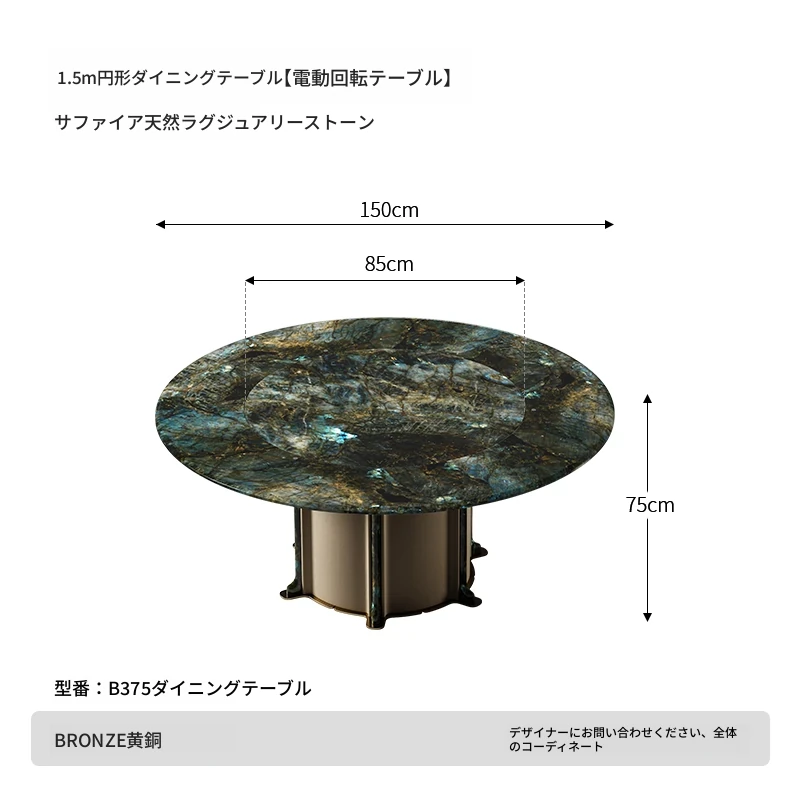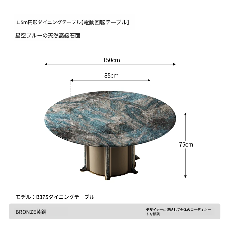 1.5m電動ダイニングテーブル[スターryブルーラグジュアリーストーン天板+ターンテーブル]