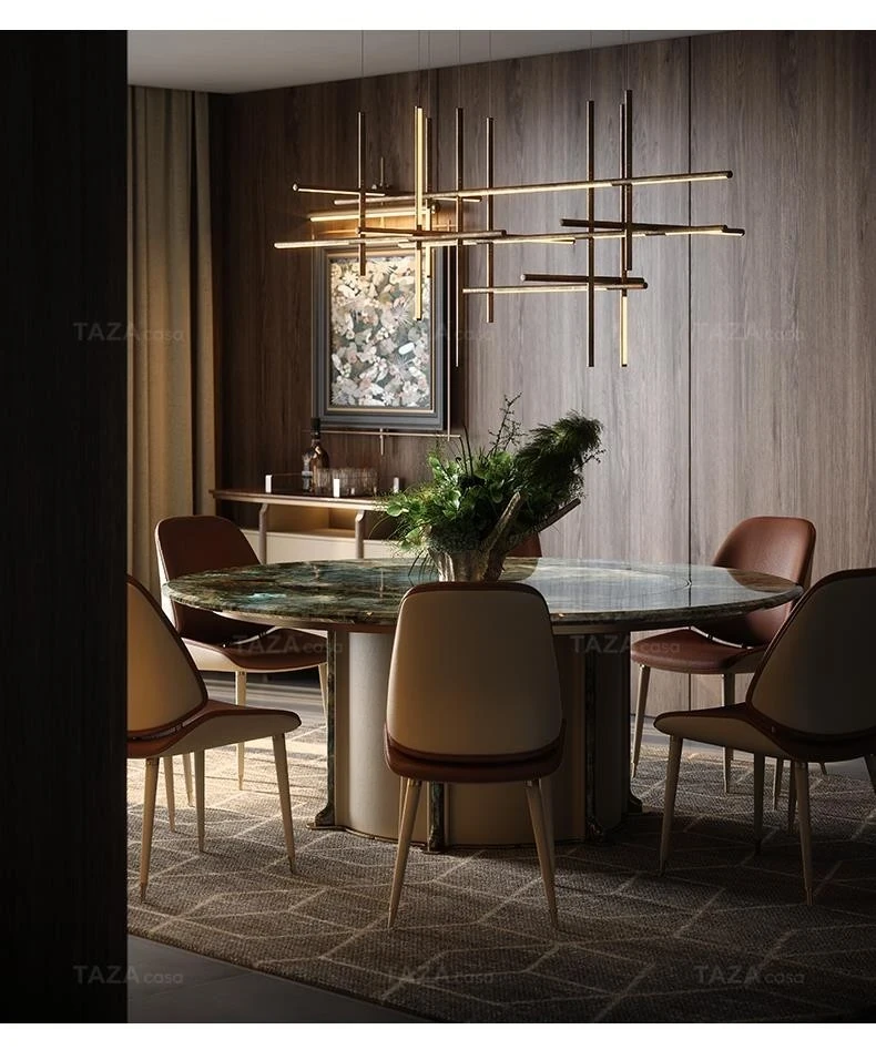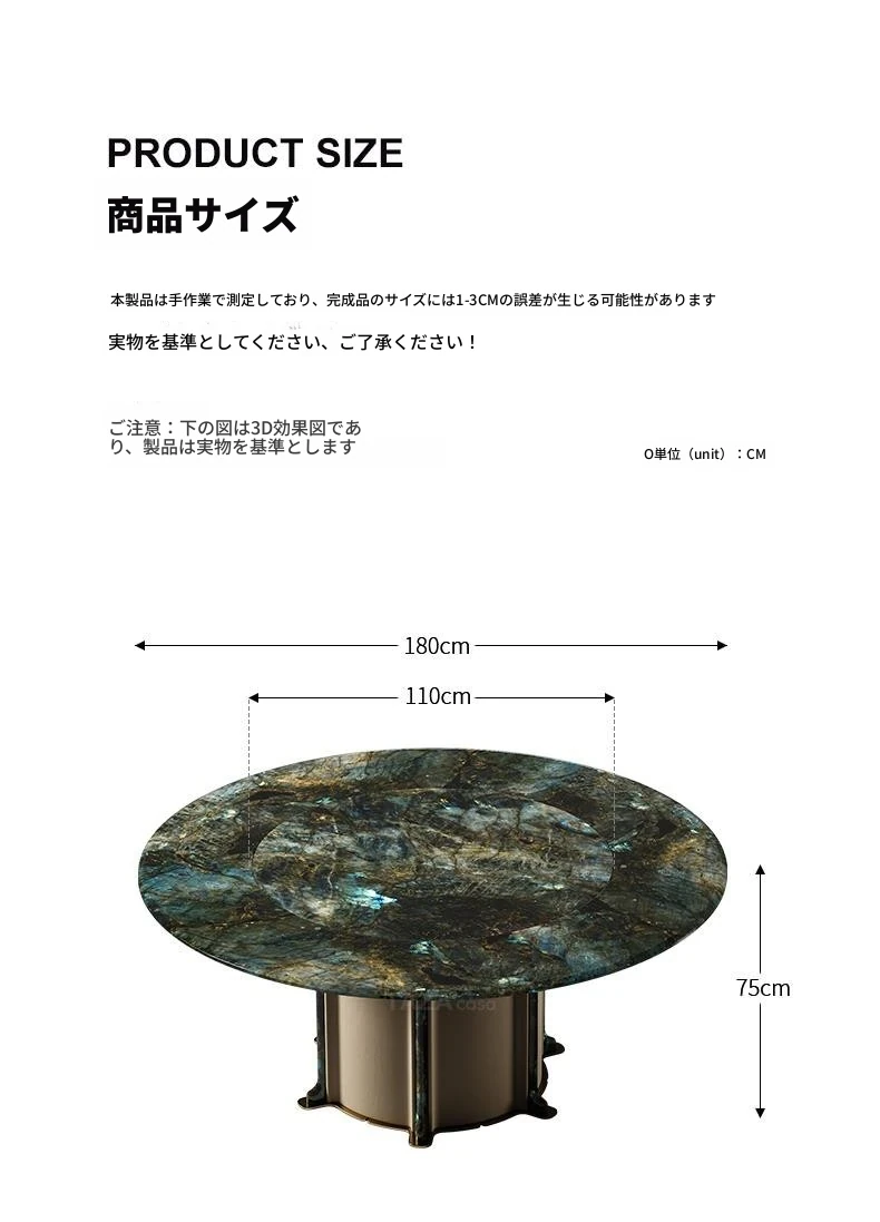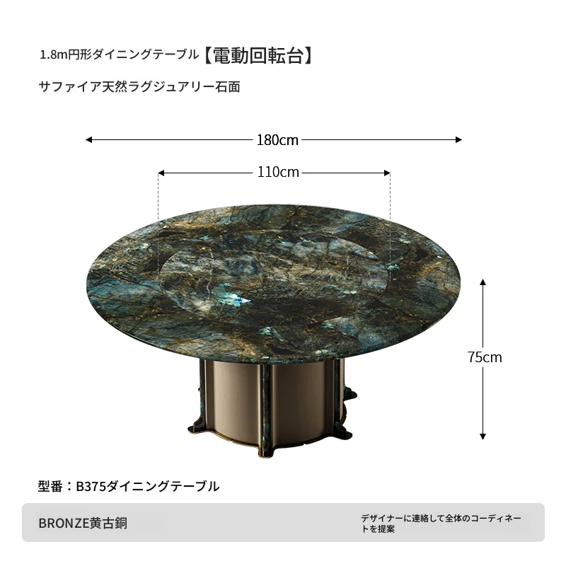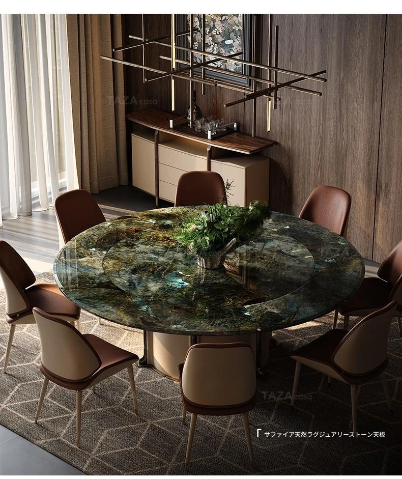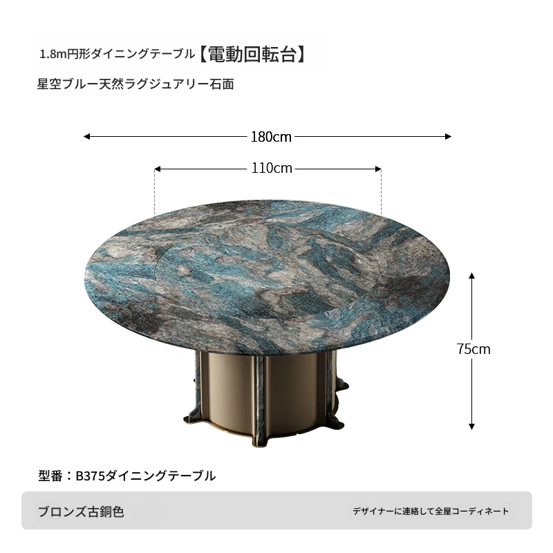 1.8m電動ダイニングテーブル[スターryブルーラグジュアリーストーン天板+ターンテーブル]