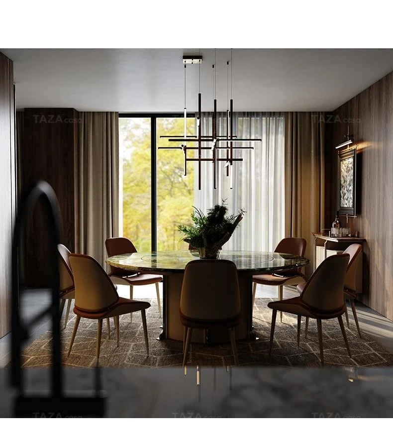 1.5m電動ダイニングテーブル[サファイアラグジュアリーストーン天板+ターンテーブル]+B159ダイニングチェア[V級本革]*6