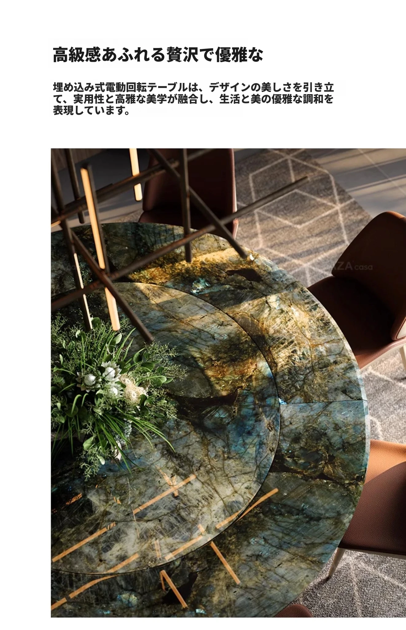 1.8m電動ダイニングテーブル[サファイアラグジュアリーストーン天板+ターンテーブル]