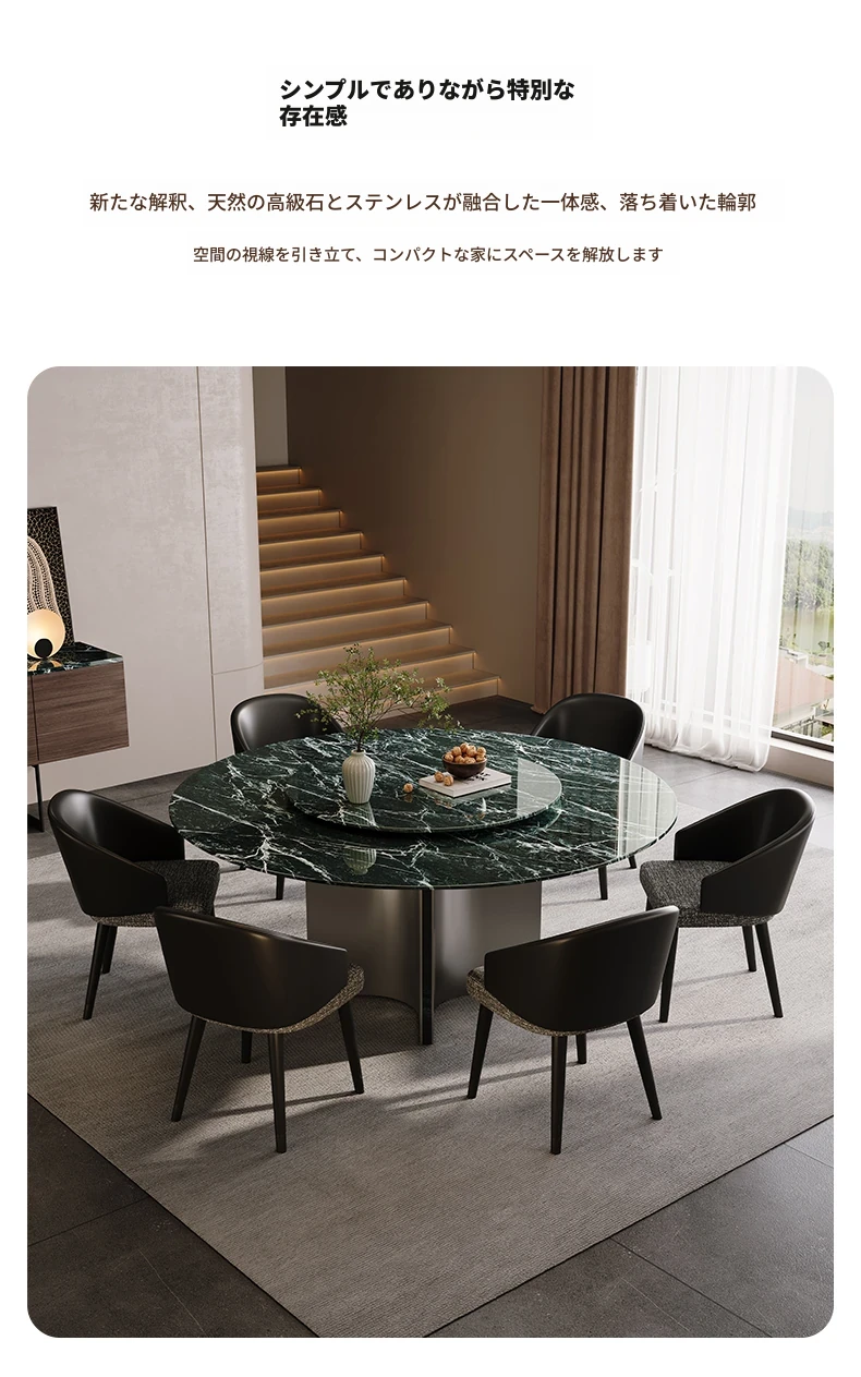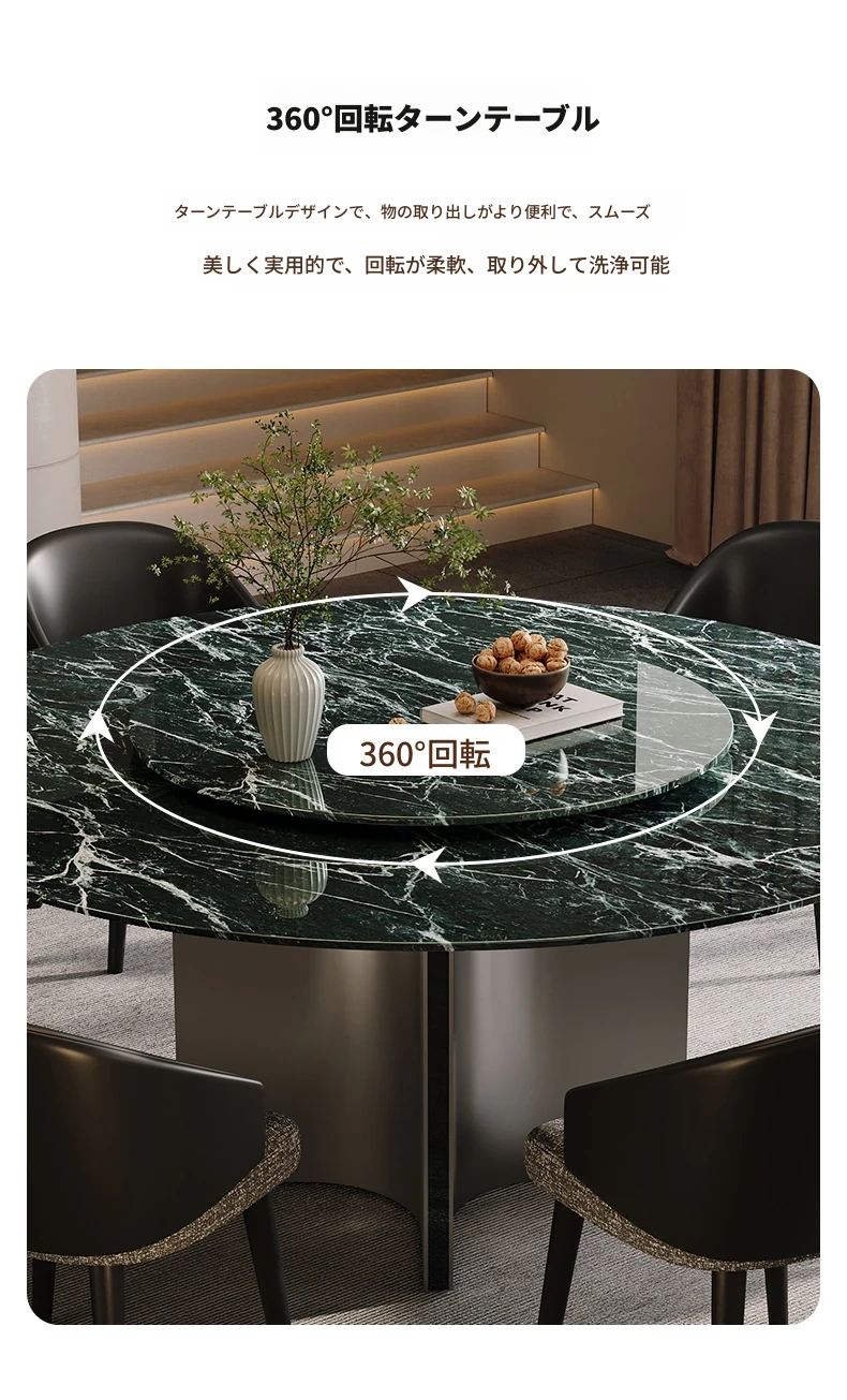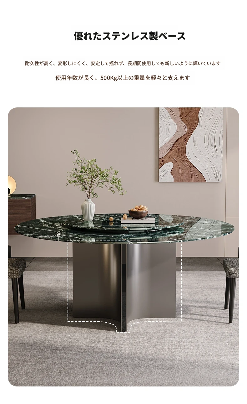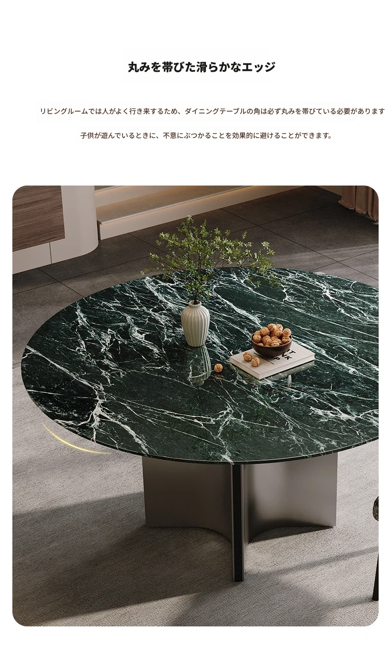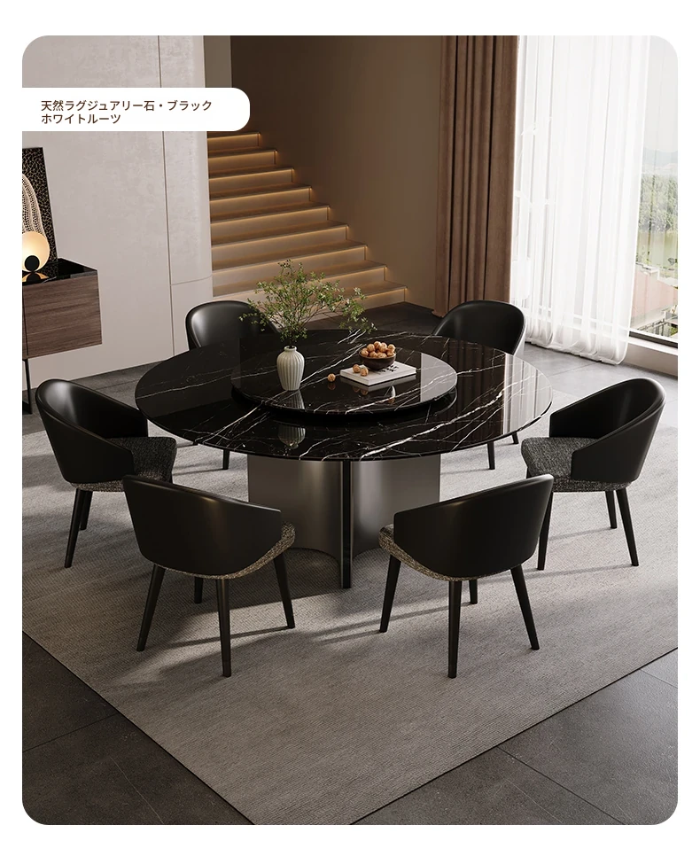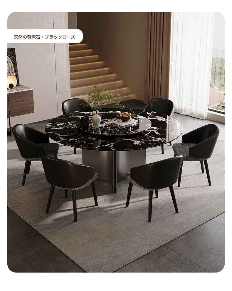 天然大理石のラウンドダイニングテーブル - イタリアンスタイルの高級感溢れるデザイン、別荘やリビングに最適!贅沢な大花模様で、食事のひとときを特別なものに。