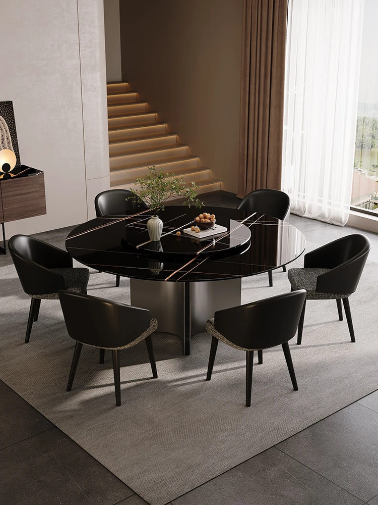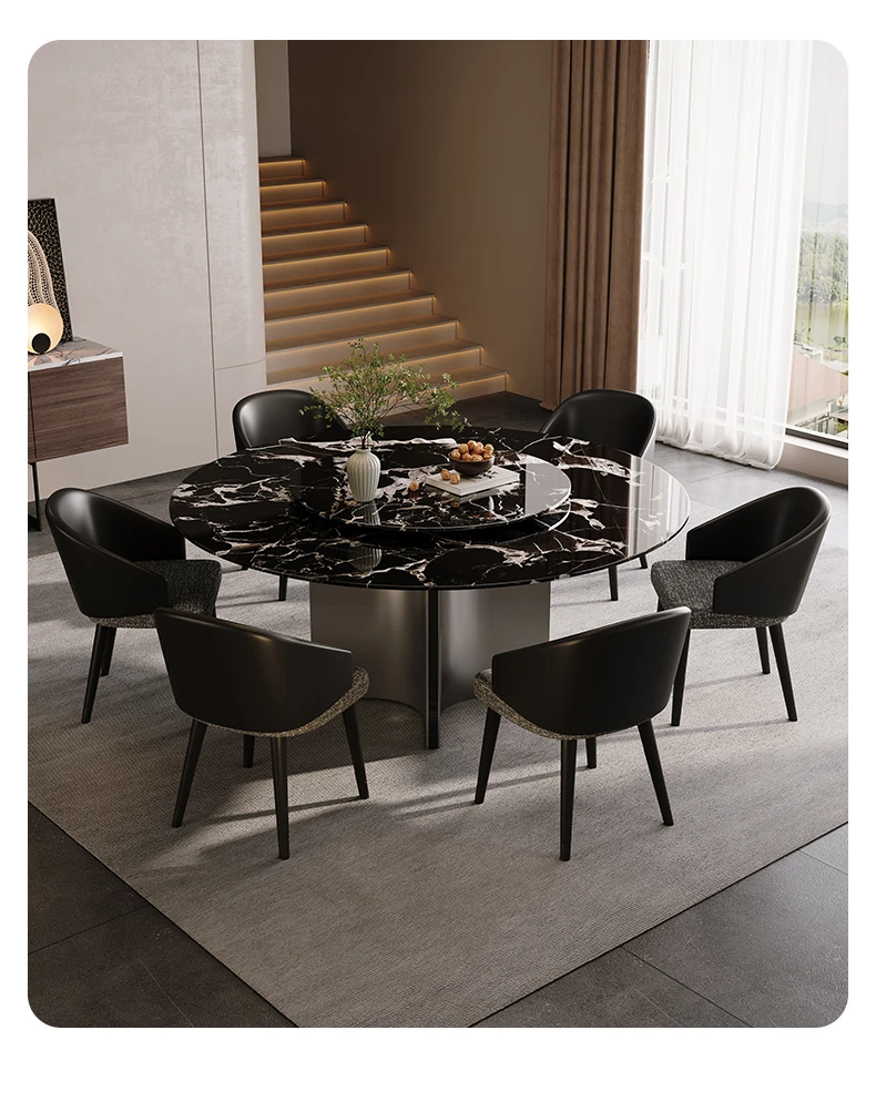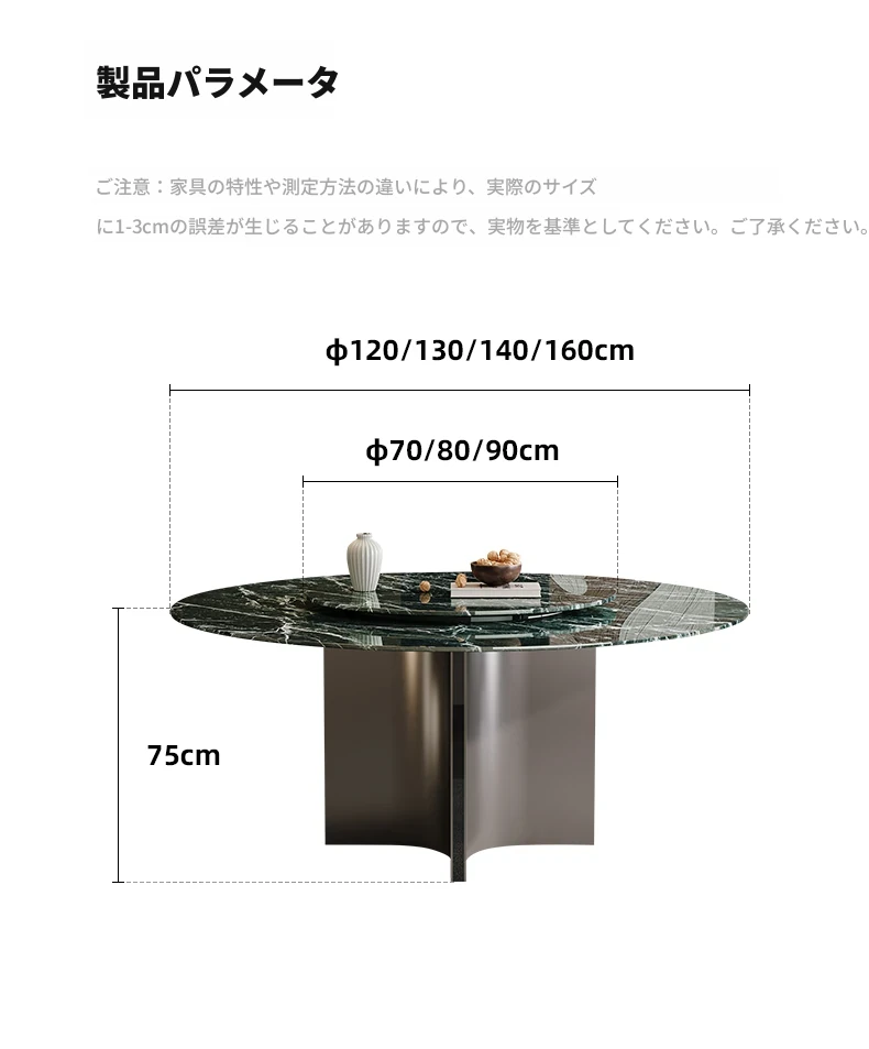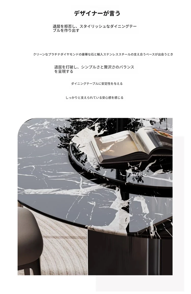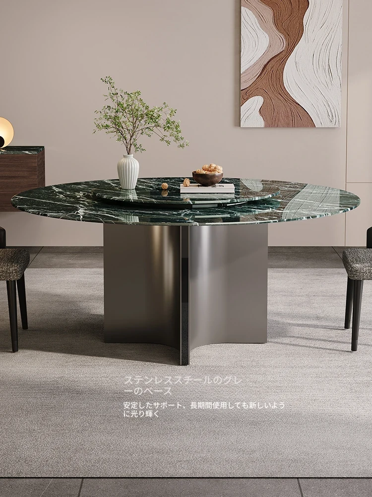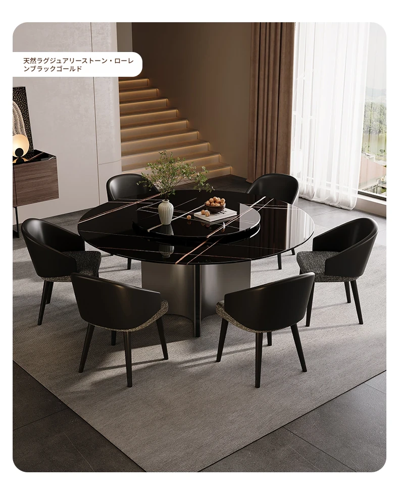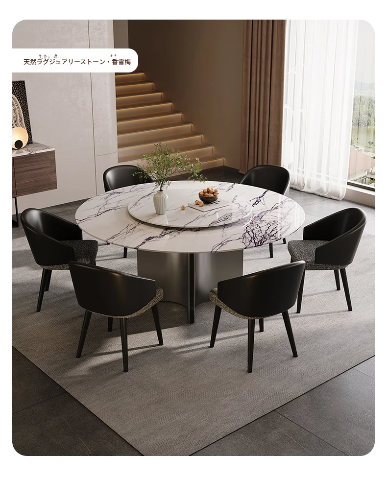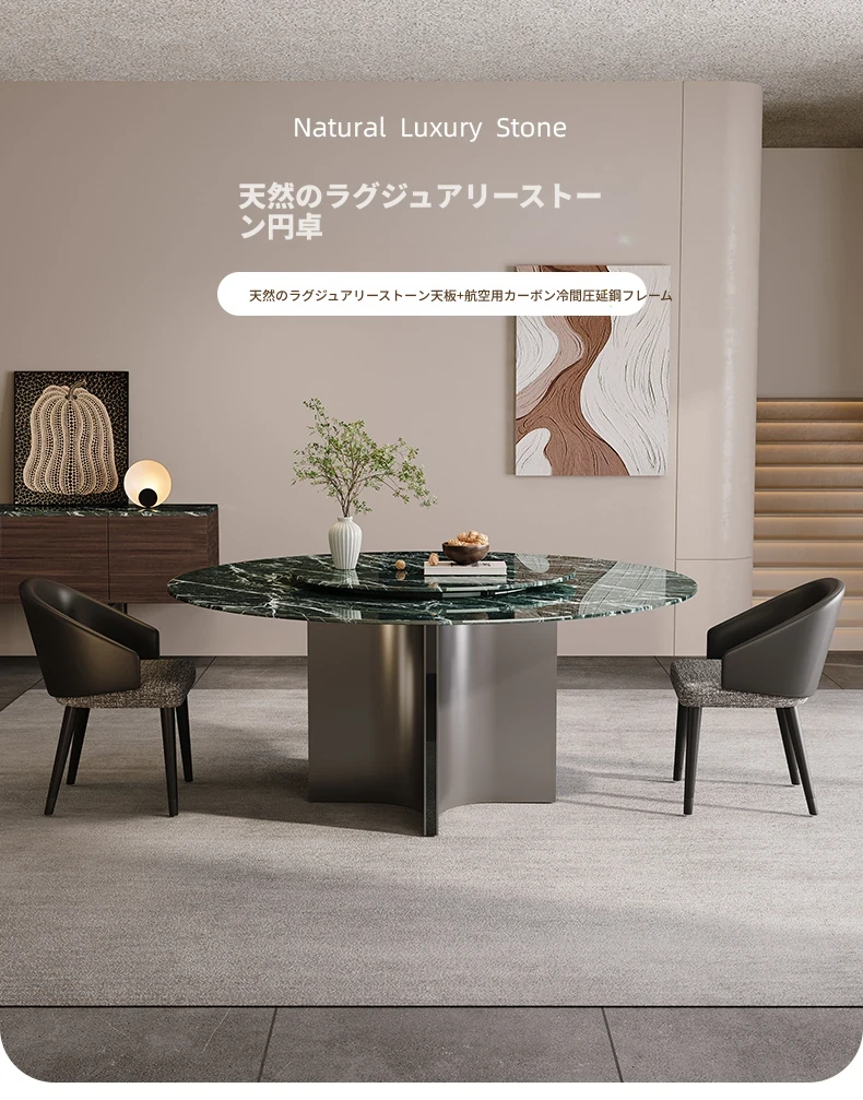 天然大理石のラウンドダイニングテーブル - イタリアンスタイルの高級感溢れるデザイン、別荘やリビングに最適!贅沢な大花模様で、食事のひとときを特別なものに。