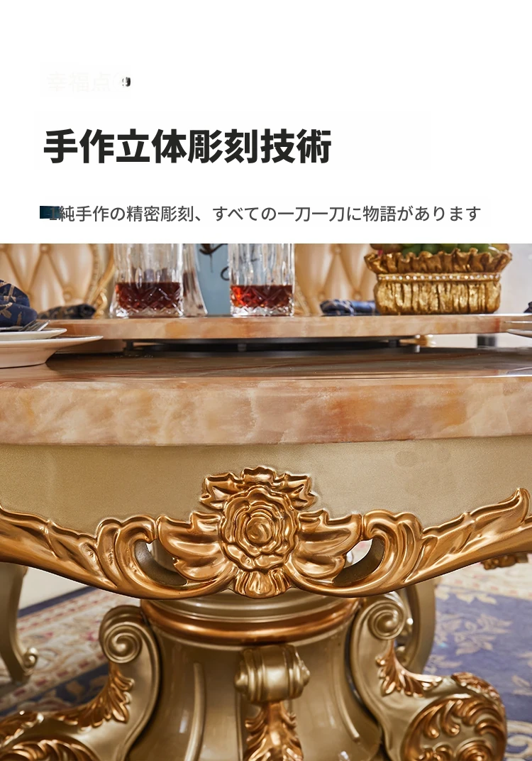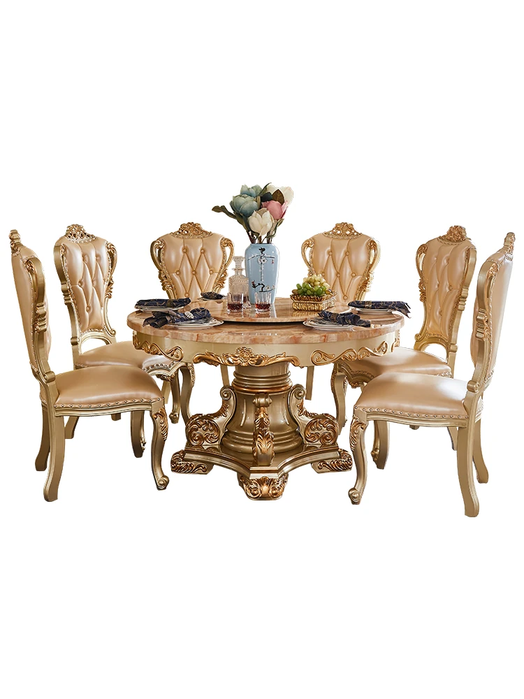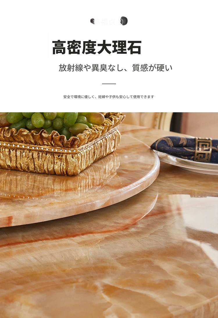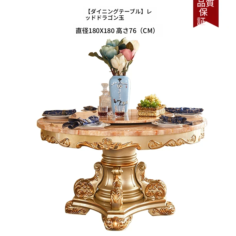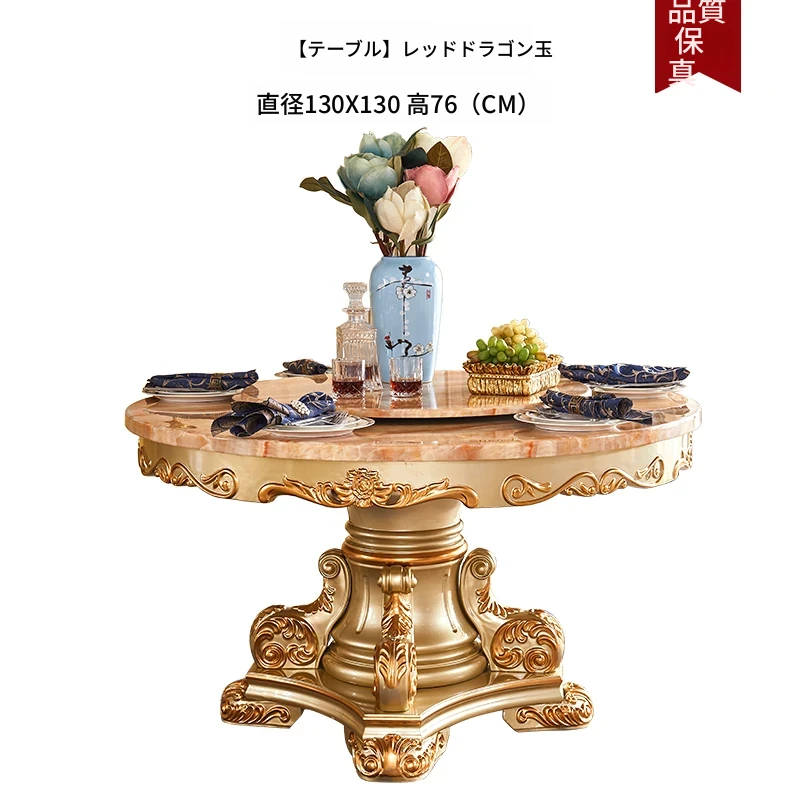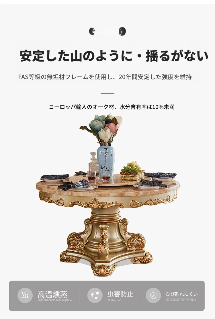 豪華な欧風全実木丸型ダイニングテーブル、回転式大理石天板付き、広々としたリビングに最適な椅子セット!家族や友人との特別な食事を演出する、贅沢なひとときをお楽しみください。