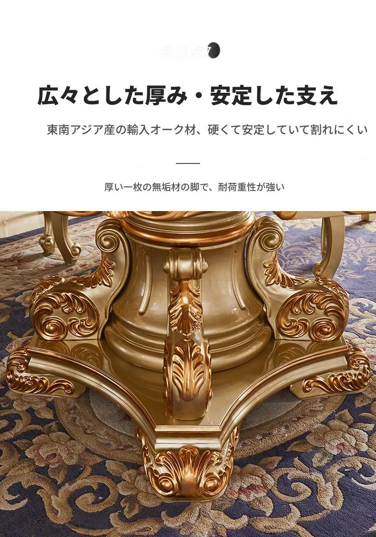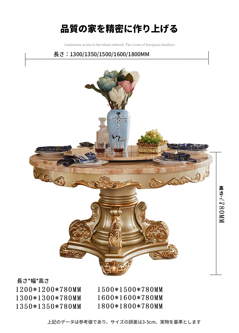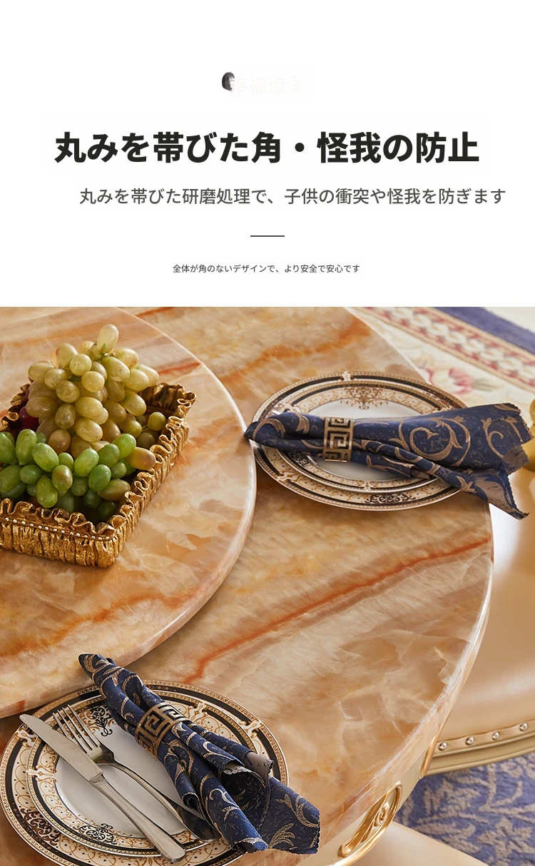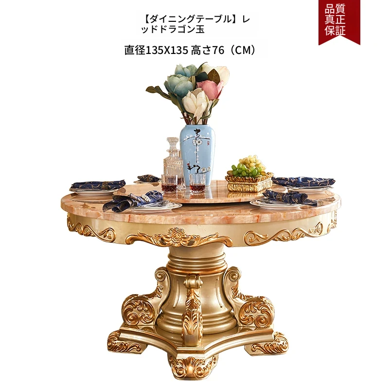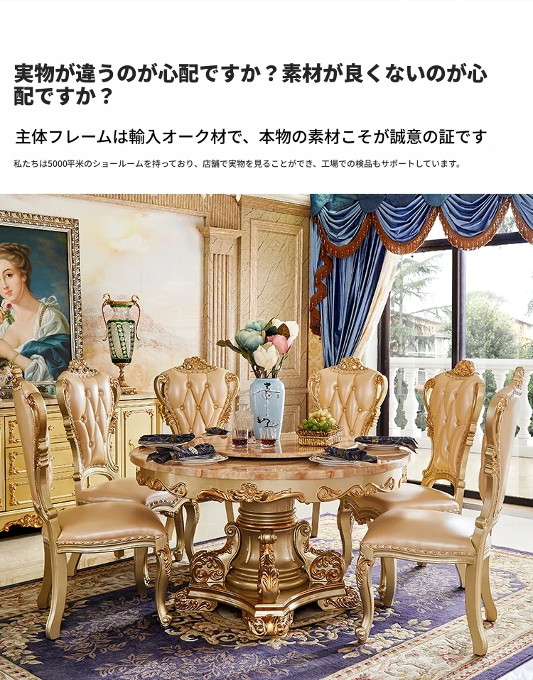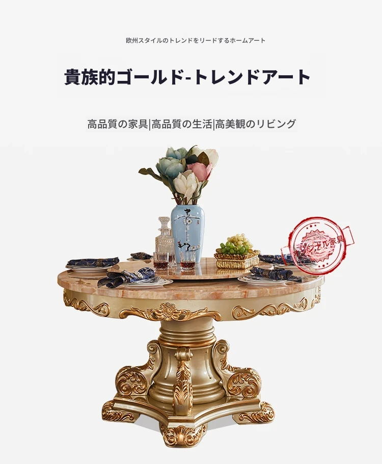 豪華な欧風全実木丸型ダイニングテーブル、回転式大理石天板付き、広々としたリビングに最適な椅子セット!家族や友人との特別な食事を演出する、贅沢なひとときをお楽しみください。