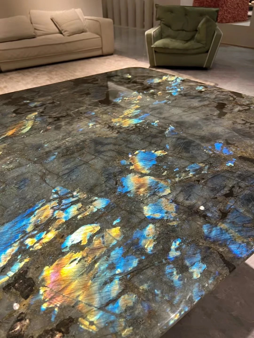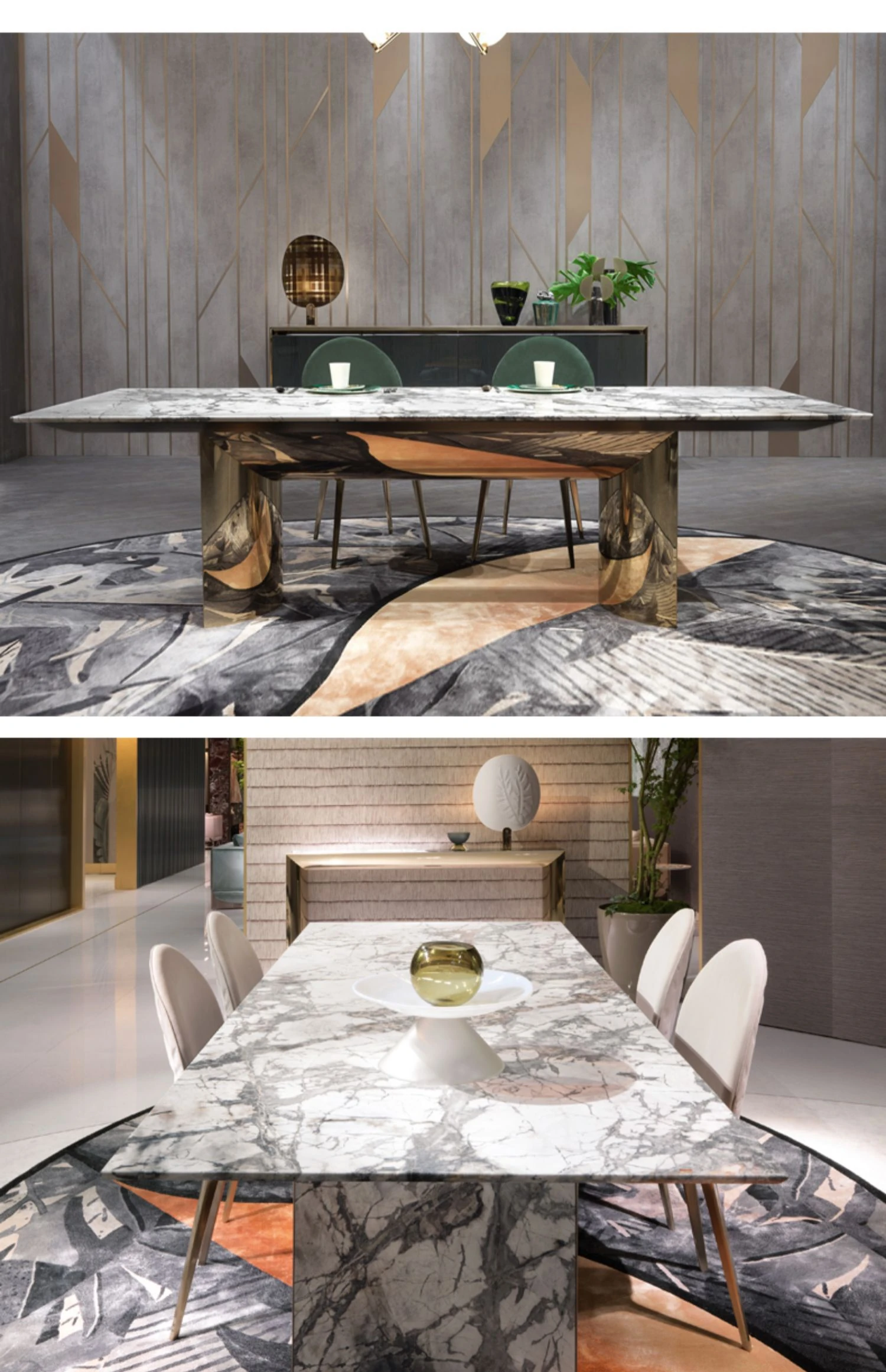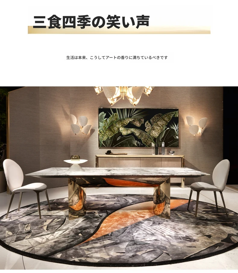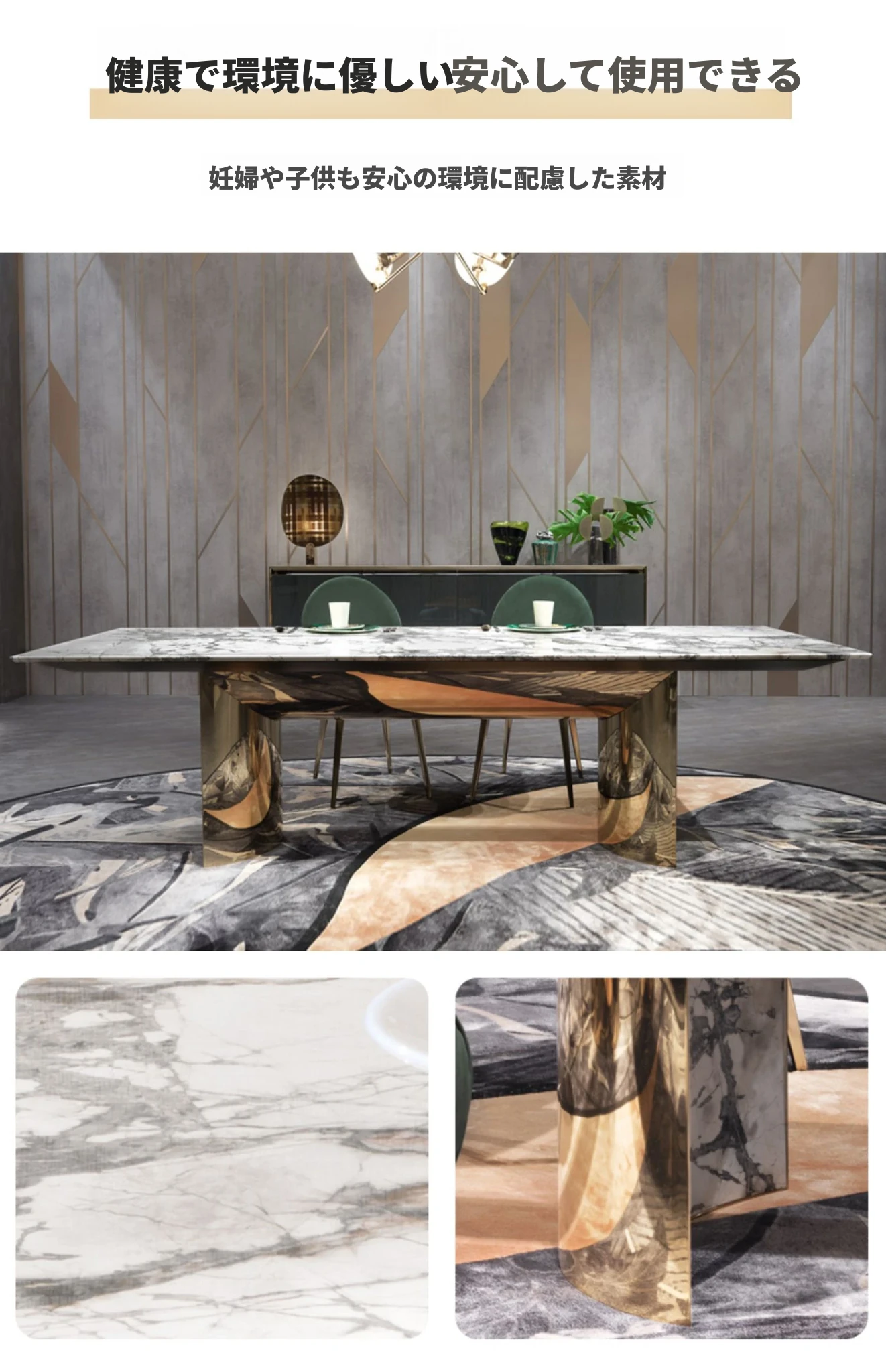 2024年新作!イタリアンラグジュアリーの全室インテリア提案、広々とした大邸宅にぴったりな天然サファイア大理石のダイニングテーブル。洗練されたデザインで、特別な食卓を演出します!