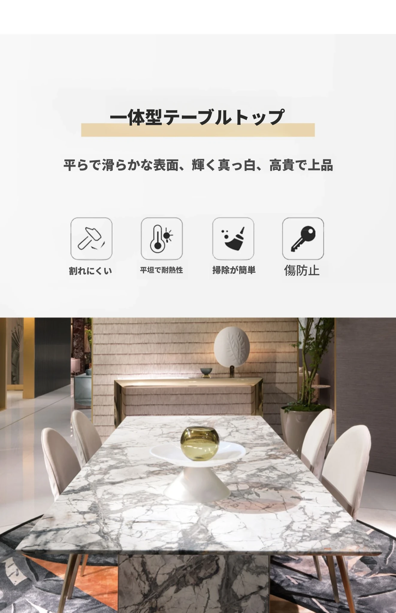 北欧風のインスタ映えデザイン!電鍍ゴールド仕上げの軽奢大理石ダイニングテーブルセット。シンプルでスタイリッシュ、小型住宅に最適な家庭用食卓。おしゃれな食空間を演出!