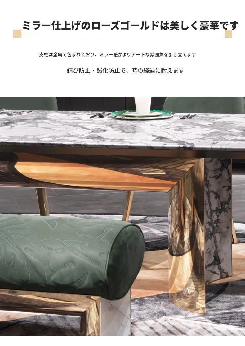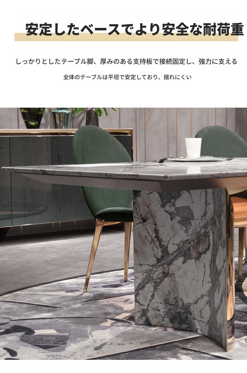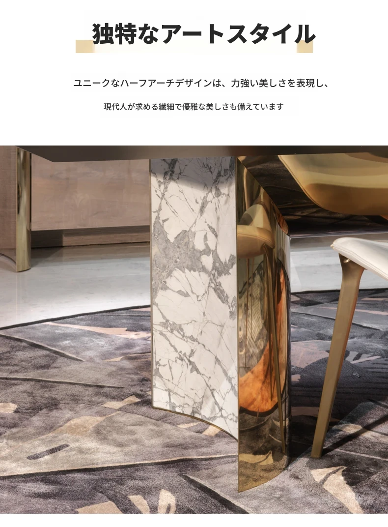 アンティーク風の高級石製ダイニングテーブル インポート・パンドラの天然大理石使用 イタリアンミニマルスタイルのテーブル&チェアセットで、洗練された食卓を演出!